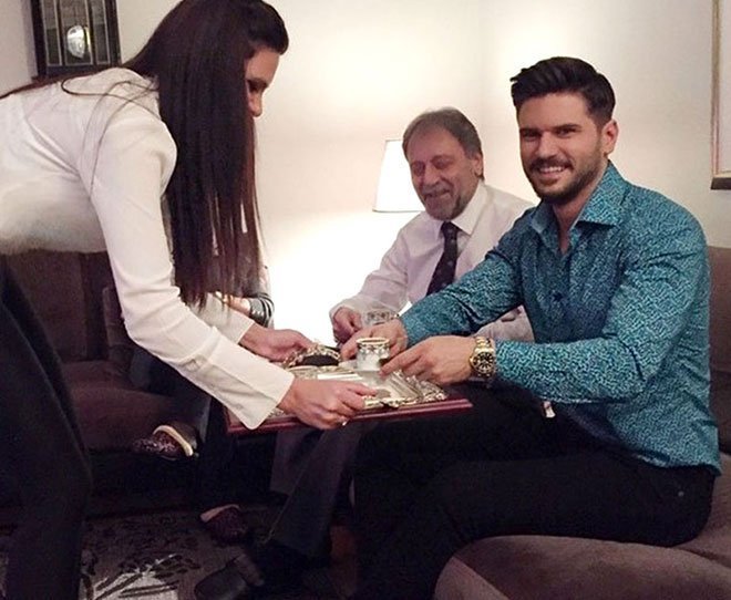 Алмеда сервира кафе , това да не е когато по турска традиция Толгахан е ходил да я иска и се пие кафе , булката кат иска може и сол да си сложи Joy Баща му е с него
