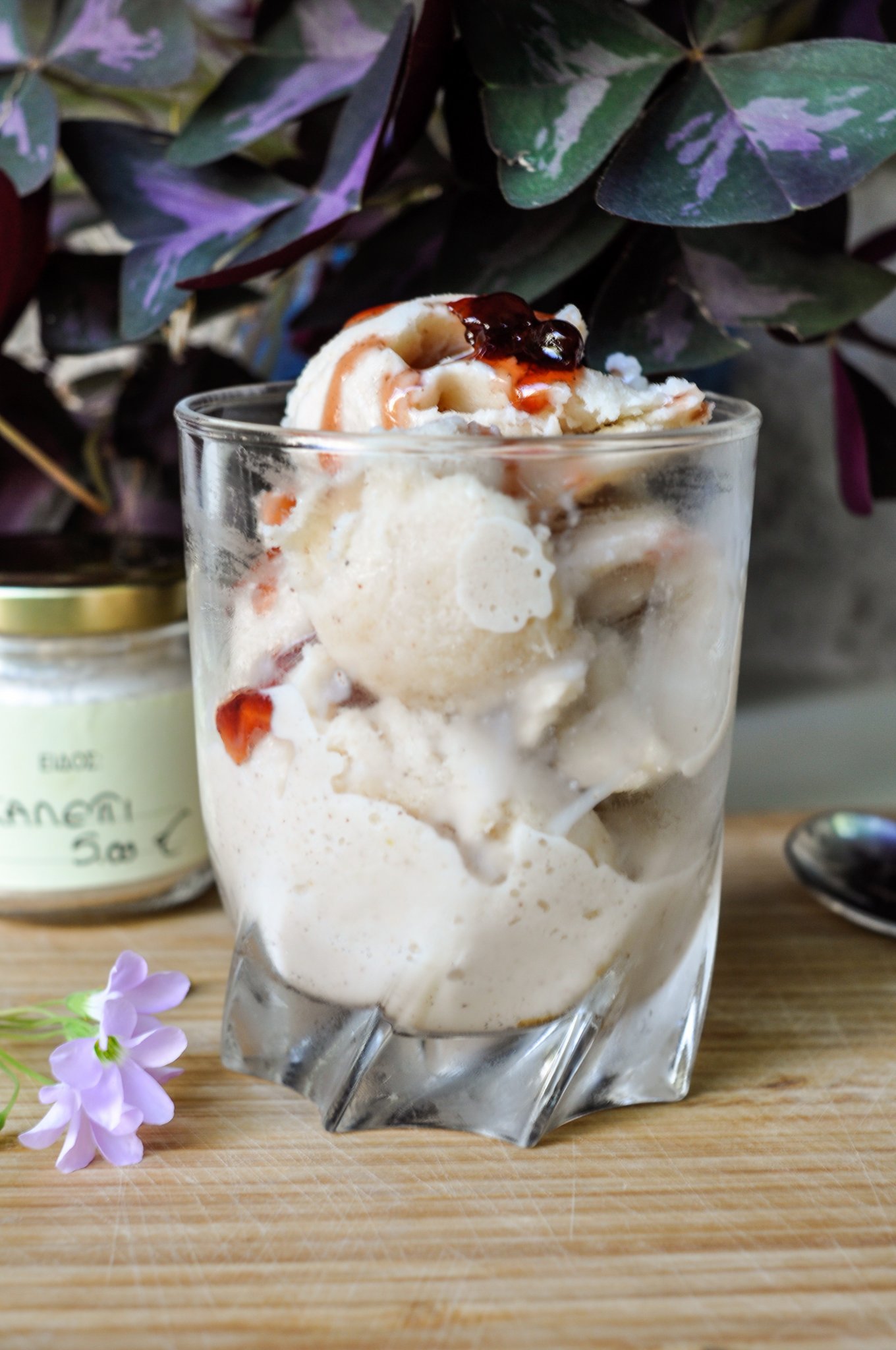 Рецептата е простичка и изисква единствено малко търпение, но интересното тук е използването на салеп – позабравена подправка, която вече почти не се намира извън Турция и Близкия Изток. Прави се от стрити на прах грудки на орхидеи и има един специфичен, ориенталски и позабравен аромат, който напомня за Леванта и покрити с разкошни сладкиши маси от други времена. Най-често се пие с топло мляко, като твърдят, че има и лечебни свойства, а аз успявам да си намеря в Кавала в ретро-магазинчето за подправки на един арменец, което естествено, се казва “При арменеца“. Възможно е да може да се поръчва он-лайн.