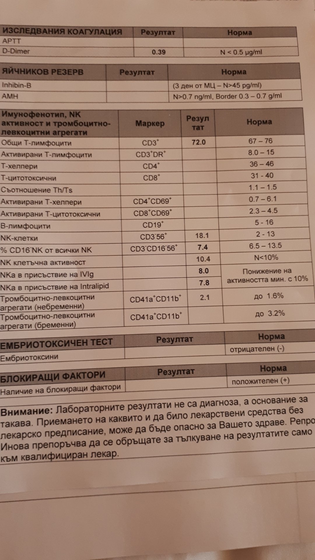 Здравейте, според вас има ли нещо притеснително в резултатите? Едните ми НК клетки са повишени, но другите са в норма. Задължително ли трябва да правя вливка интралипид? Това е препоръката, която получих.