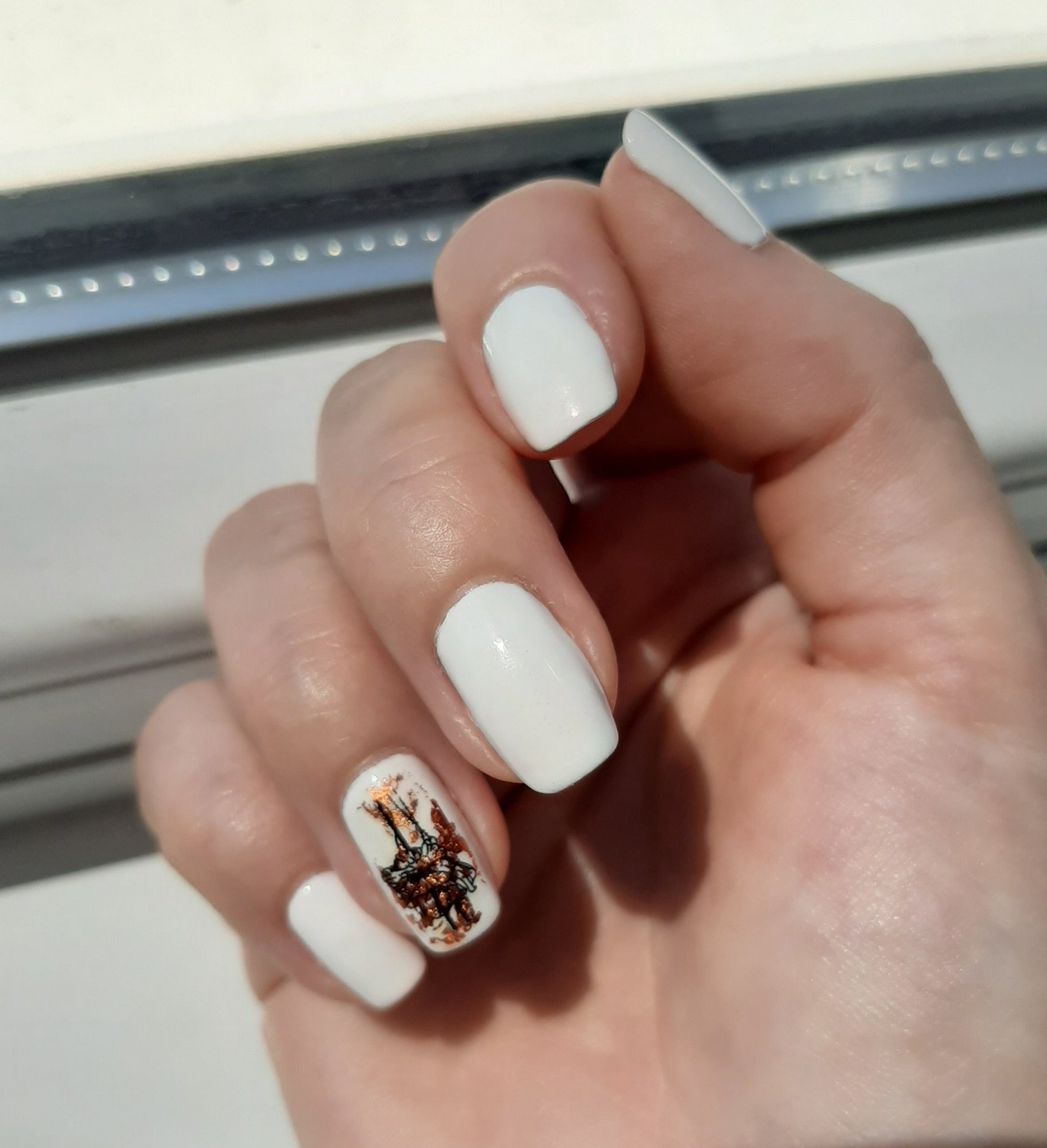Матов бял на флормар (и топ лак) с фолио и водни ваденки. Идеята беше да пробвам един нов неон върху него, но толкова се харесах с бели нокти, че го оставих.  Sunglasses