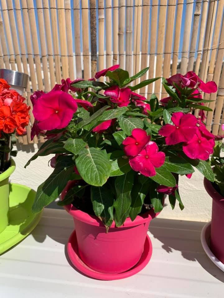 Тази пролет малко хаотично купувах, но за догодина вече знам точно какво искам и къде как да го сея. Например забелязвам, че мушкатата, които преместих в по-големи саксии растат и цъфтят повече. Най-вероятно ще съкратя броя на малките саксии. Малко разхвърляно ми се получи защото добавях импусливно новите разстения. Искам да е по-подредено и с по-големи цветни точки, ако мога така да се изразя. Сукулентите ще аранжирам по групи. Много хубави идеи видях тук. Но поне добивам опит кое цвете как се гледа, полива и какви грижи изисква. Чета ви за почвите, но тук са съвсем различни. В Лидъл от време на време има за сукуленти, за рози, аз досега само универсални съм купувала и то от цветарски магазини. Още не знам кои ще оцелеят до зимата и къде ще ги прибирам. Имам малка тераса с южно изложение, стълбището също е вариант. Последното, което купих са тези хризантеми (поне мисля, че е хризантеми).