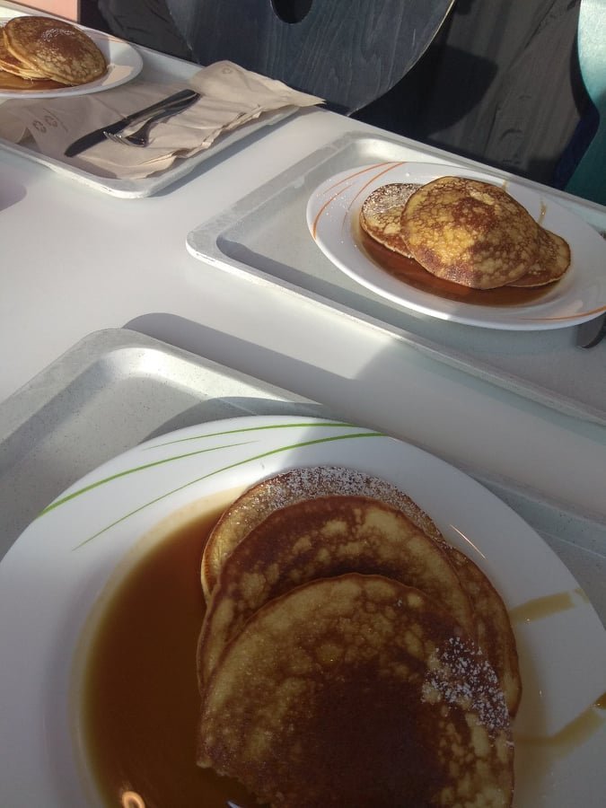 Снимките са  от мензите от времето преди пандемията..Виждах я, че или е на лекции, или на практика,  или учи вкъщи  и сигурно нищо не си готви и кара на сухоежбини, та я  критикувах... И в отговор ме затапваше със снимки, че се храни...Laughing