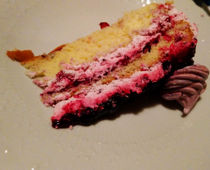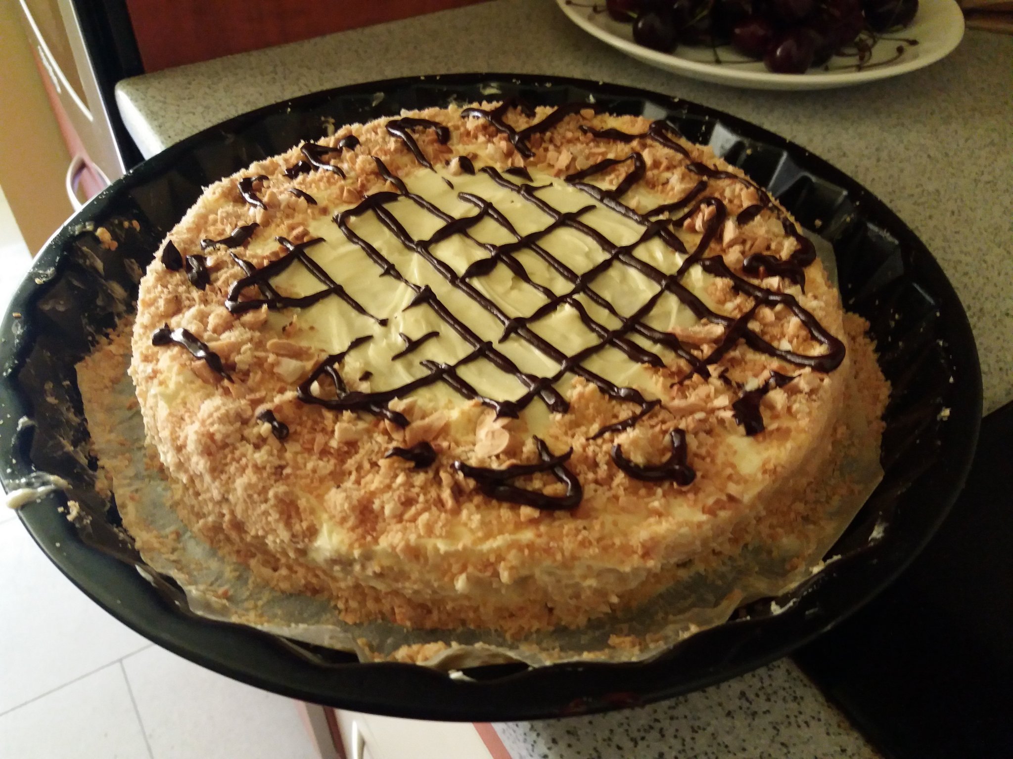 Авторът разкрива, че десертът е импровизация без конкретна рецепта. Основата е бутер тесто, изпечено до златисто между две тави за равномерна и плоска текстура. Кремът се състои от мляко, нишесте и захар, наподобяващ домашен крем от яйца, брашно и мляко. Включени са малини и черен шоколад. Авторът предлага да сподели връзка към рецепта, която е подобна на тяхното творчество.