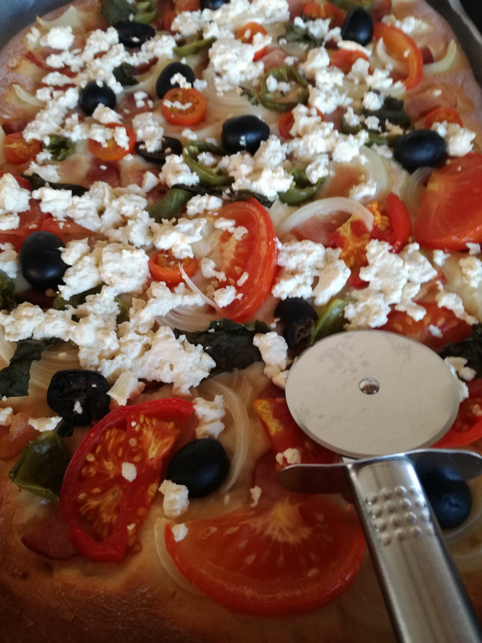 Пица. Блатът е готов, вкъщи мен хич ме няма с тестата, а за друг да не говорим.