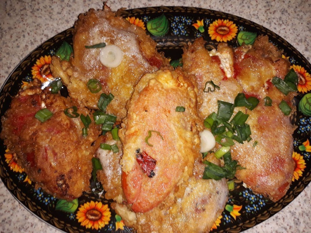 Вчера мусака, днес панирани чушки пълни с яйце и сирене .