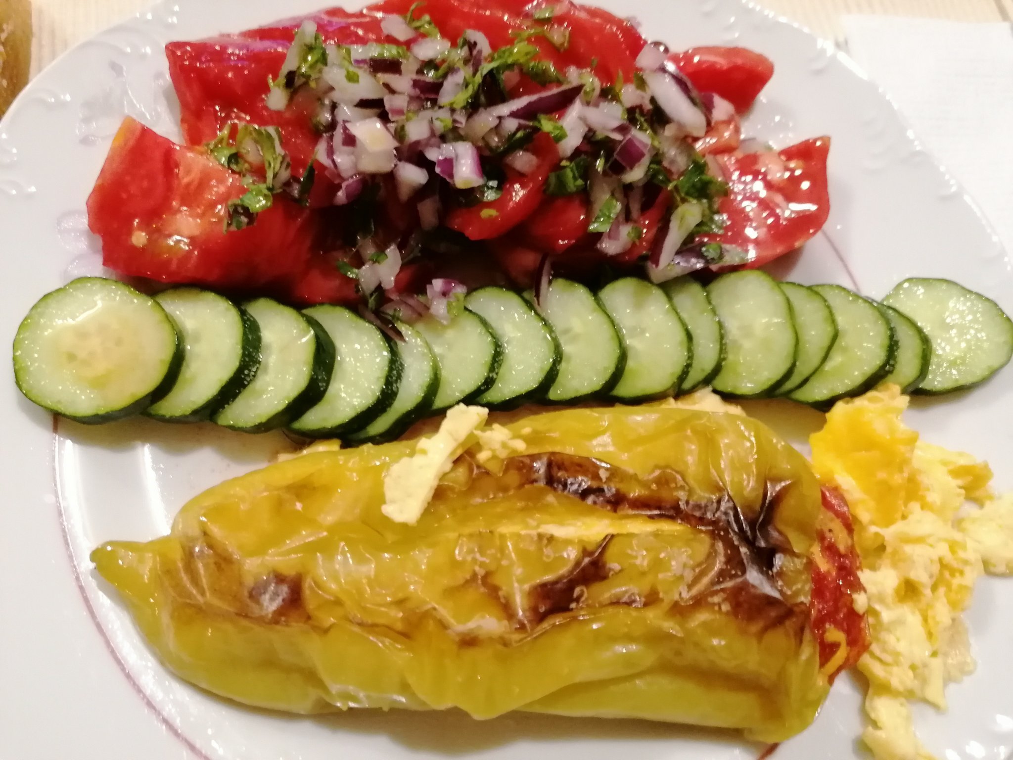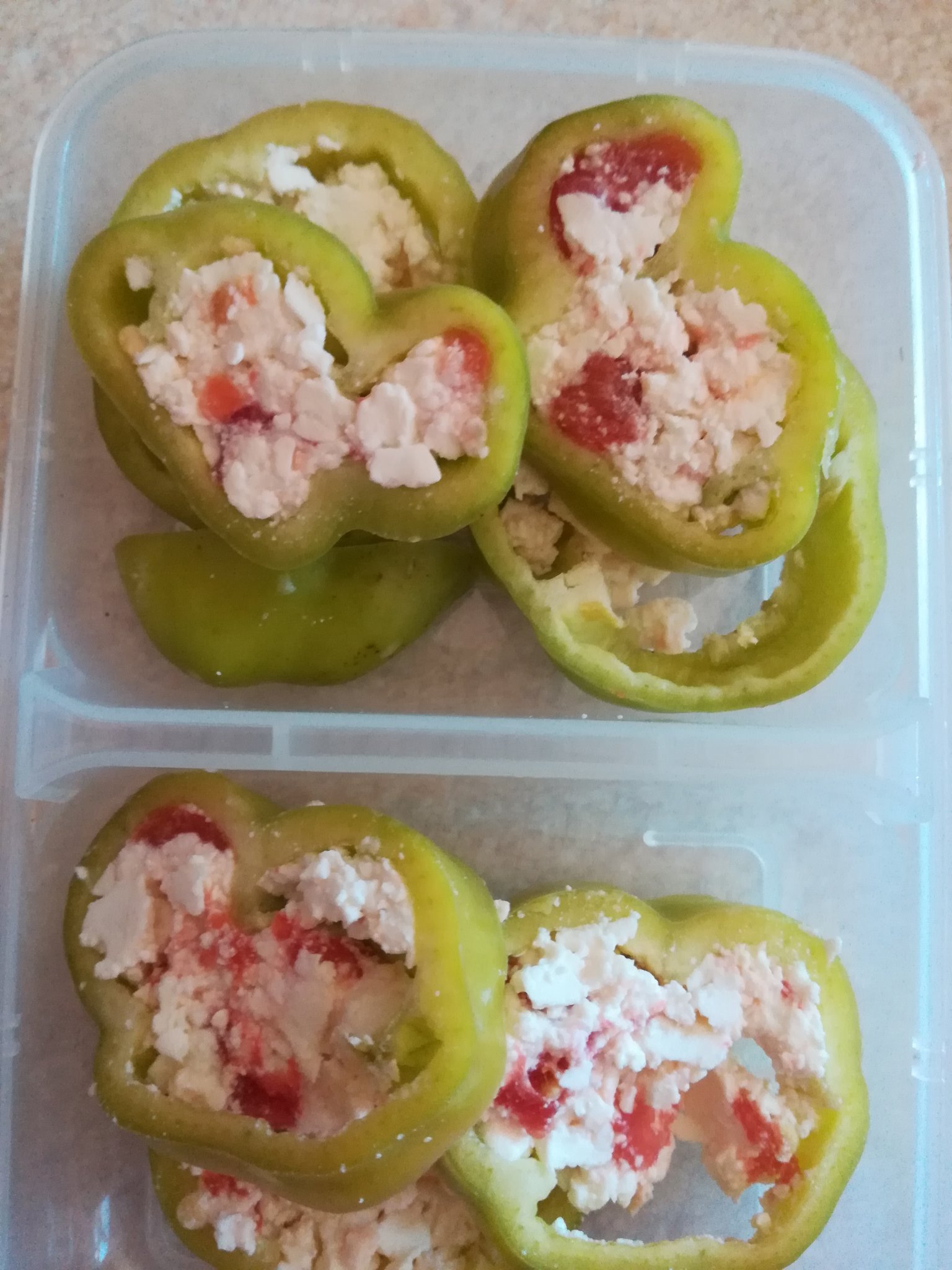 Вчера домашен бройлер със сос Бешамел, тази вечер пълнени пиперки с яйца, сирене и кашкавал.
