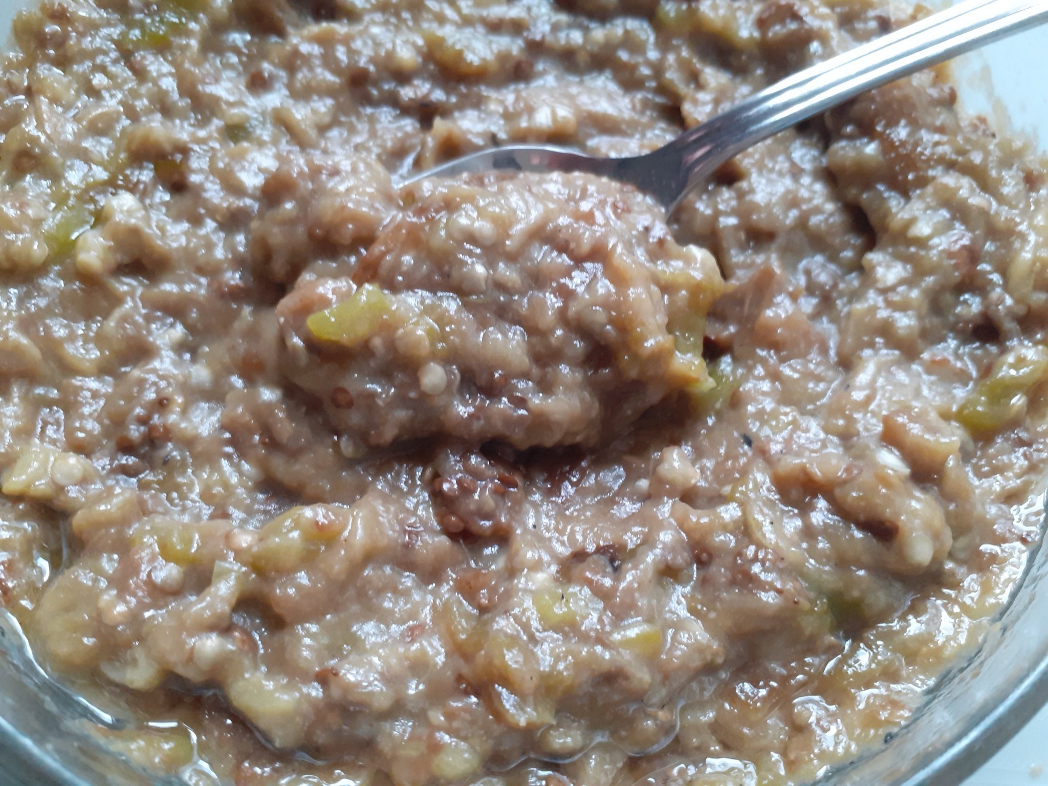Текстурата на пеканката не е жилава; по-скоро това е нормална консистенция за автора, който я описва като не прекалено ронлива, но сочна. Тя споделя, че пеканката се съчетава добре вкусовете и наистина стои много сочна. В рецептата се използва извара, рикота, яйца, нишесте от тапиока (естествен сгъстител), ванилия и стафиди.