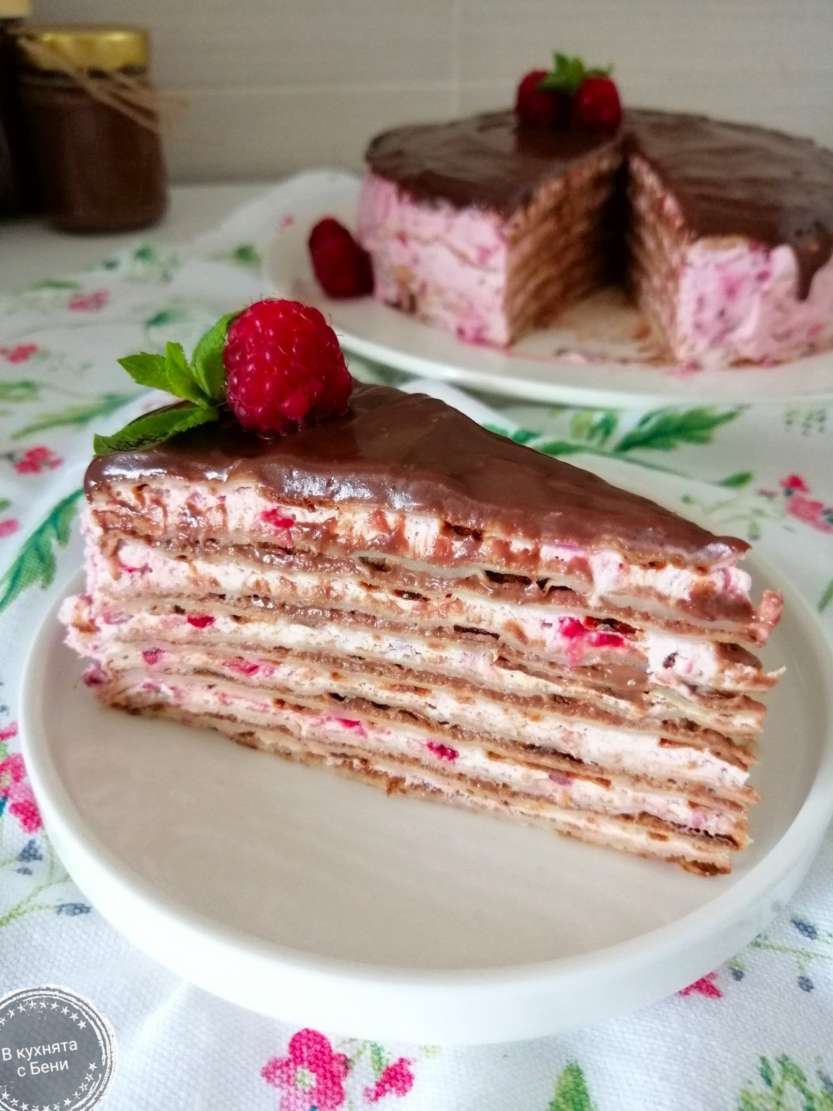 Авторът разкрива, че десертът е импровизация без конкретна рецепта. Основата е бутер тесто, изпечено до златисто между две тави за равномерна и плоска текстура. Кремът се състои от мляко, нишесте и захар, наподобяващ домашен крем от яйца, брашно и мляко. Включени са малини и черен шоколад. Авторът предлага да сподели връзка към рецепта, която е подобна на тяхното творчество.