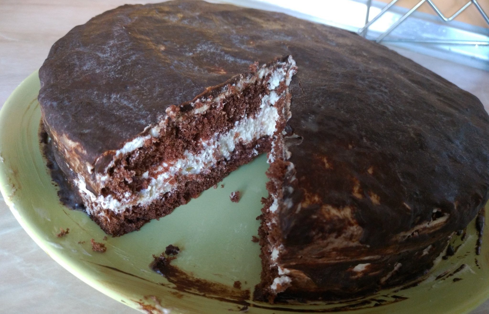 Бисквитена торта от домашни бисквити, яйчен крем и заквасена сметана