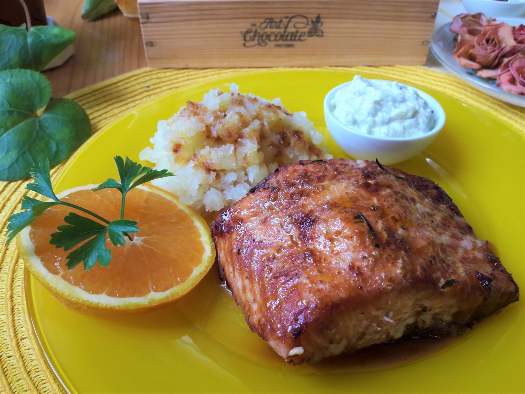 Рецептата е много лесна, сьомгата става много ароматна и без соса, но сосът си заслужава - подходящ е както за риба, така и за картофки. Правя я няколко пъти и винаги с отличен резултат!