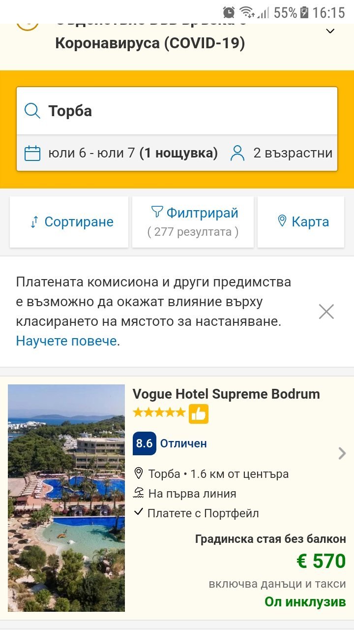 loewin разбира се обстановката е необичайна и си е мой проблем, че си купих почивката толкова рано. Но понеже българското Черноморие не предлага нещо повече от останалите курорти, които са на 2-3 часа със самолет от Западна Европа, то поне може да се конкурира с тях предлагайки по-ниски цени и по-флексибъл резервации, особено в необичайни обстановки. А то не е така.