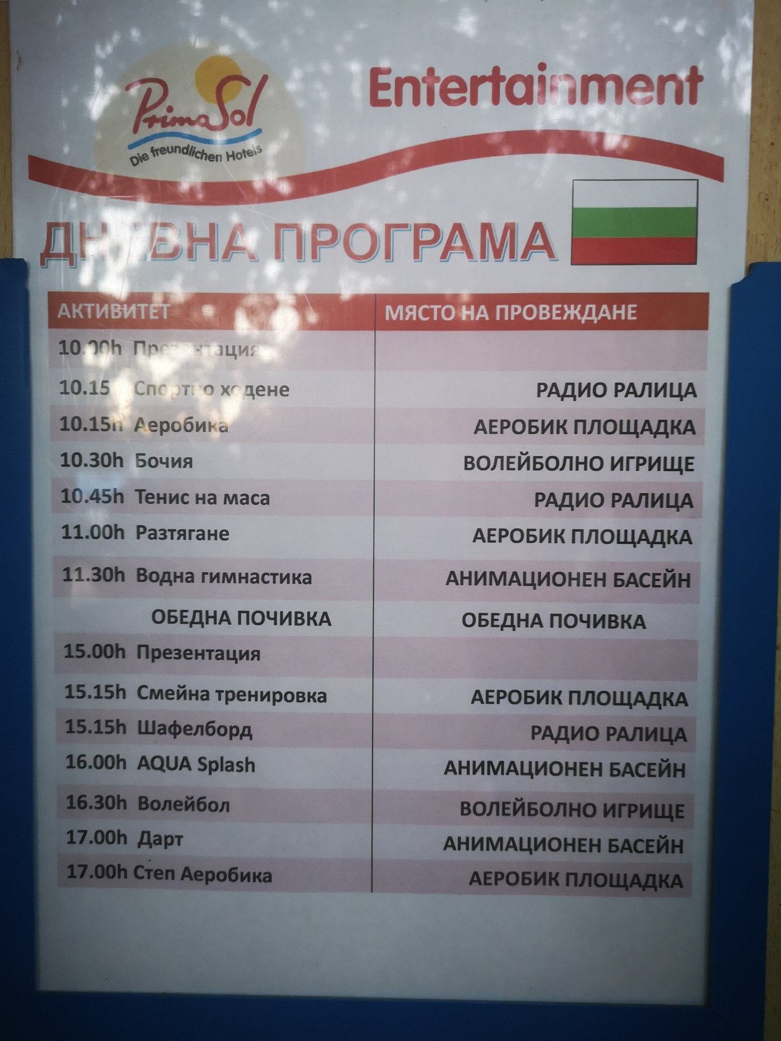 Това снимах относно анимацията, не знам как е през деня, защото ние сме на плаж през целия ден.