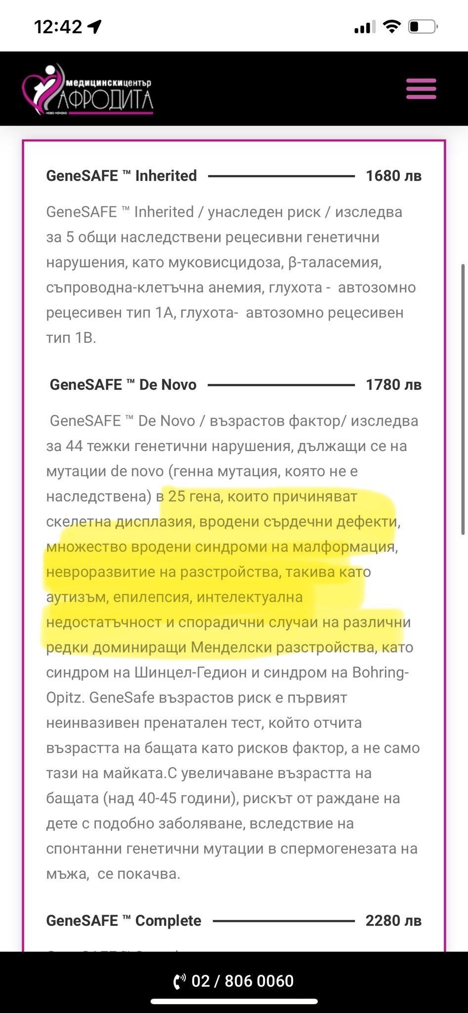 Чудя се между Пренатест премиум плюс, nifty в геника и maternity genome в cell genetics.