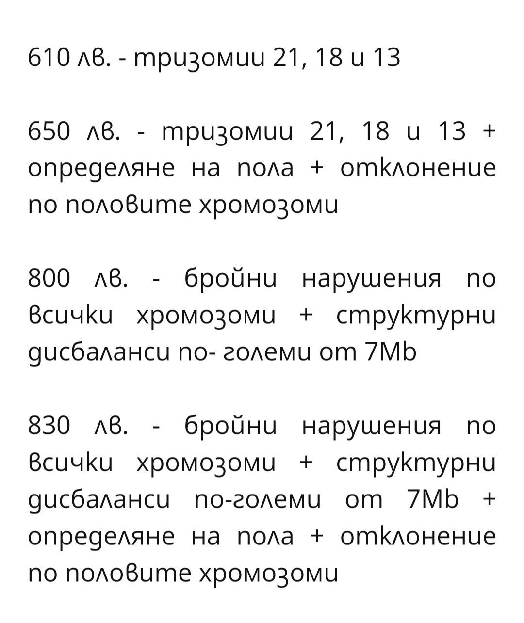 В последствие, ако някоя майка реши да съхранява стволови клетки имат различни пакети с отстъпка в случай, че си правил НИПТ при тях. Аз засега съм пас за стволовите клетки, но ако някой реши - при тези цени, отстъпките се усещат и са добри.