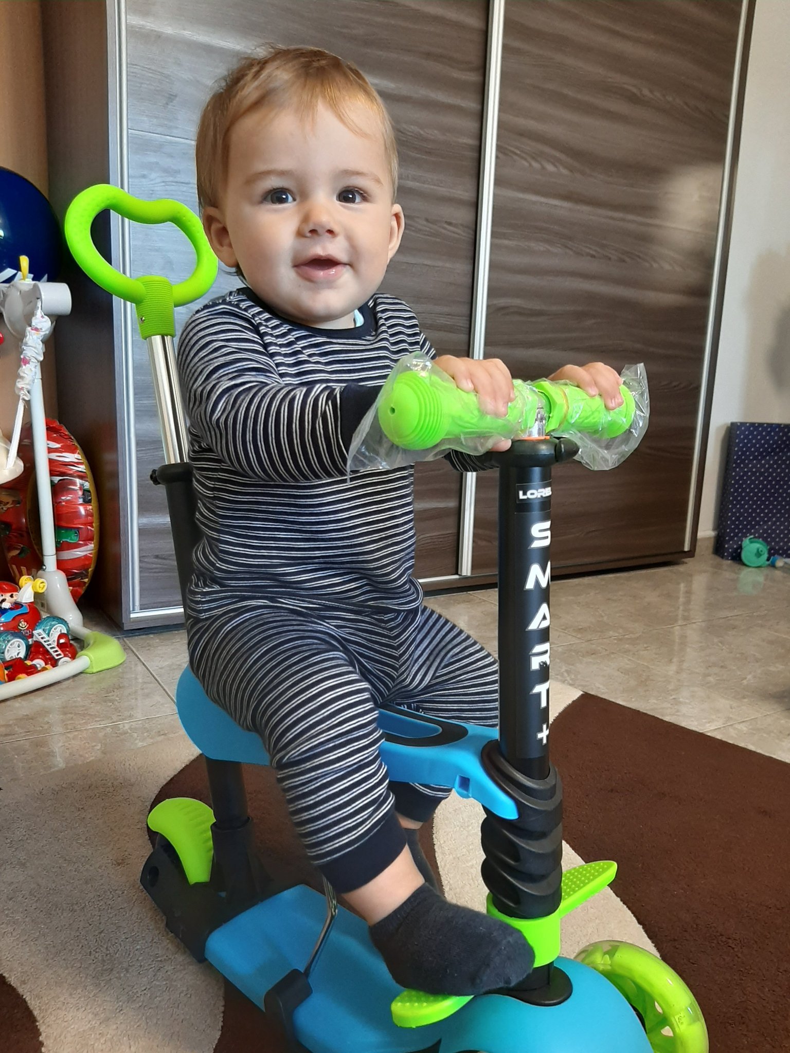 На мен ми е първо,но да ти кажа нищо не сме му купували. За рожденния ден му взехме тротинетка, защото не може да ходи сам, но се качва и чака да го дърпат и бутат. Даже за рожденния ден казах само дрехи да му се взимат, защото той не си играе с играчки. Щяхме да взимаме акумулаторна кола, но се отказахме като порасне малко ще видим дали ще взимаме.