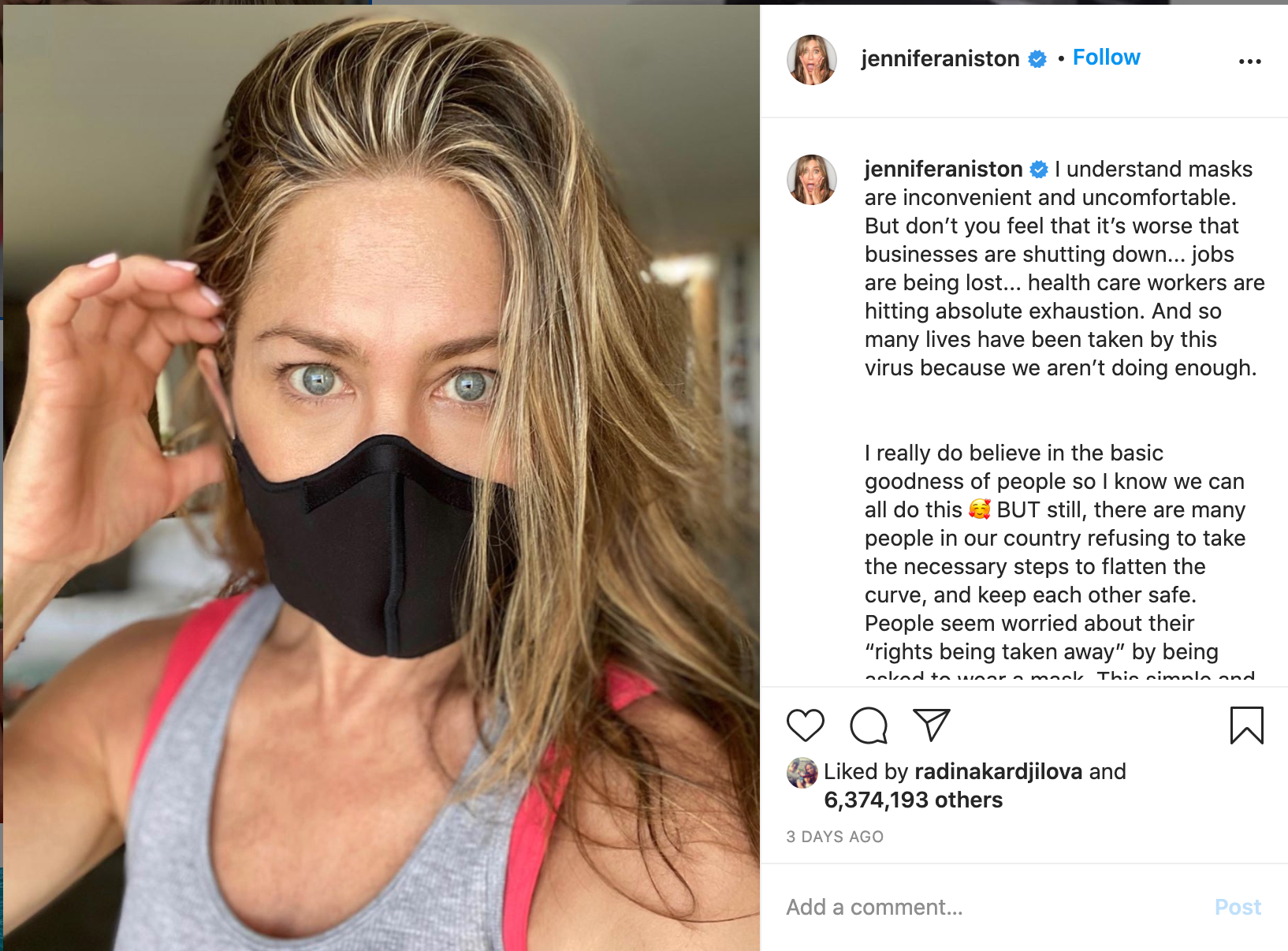 Дженифър Анистън защо ми се струва, че си е сложила маската наопаки: