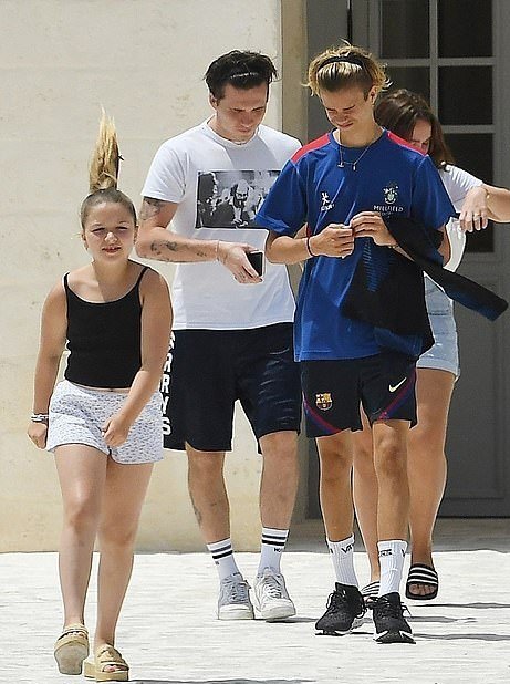 Бекъм Фемили на почивка в Пулия. Обожавам чорапки с джапанки. 🤪