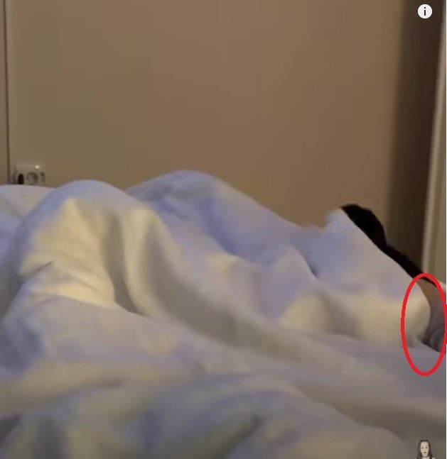 Сега,като се загледах хубаво,това е очевидно десен крак,а левият е под завивката. Други крака под завивката не виждам,та най-вероятно Гана си е сама в леглото с чорапи и анцуг. Другия вариант е собственичката на апартамента да си е в леглото,а Гери да се е качила на рамката отгоре да снима.