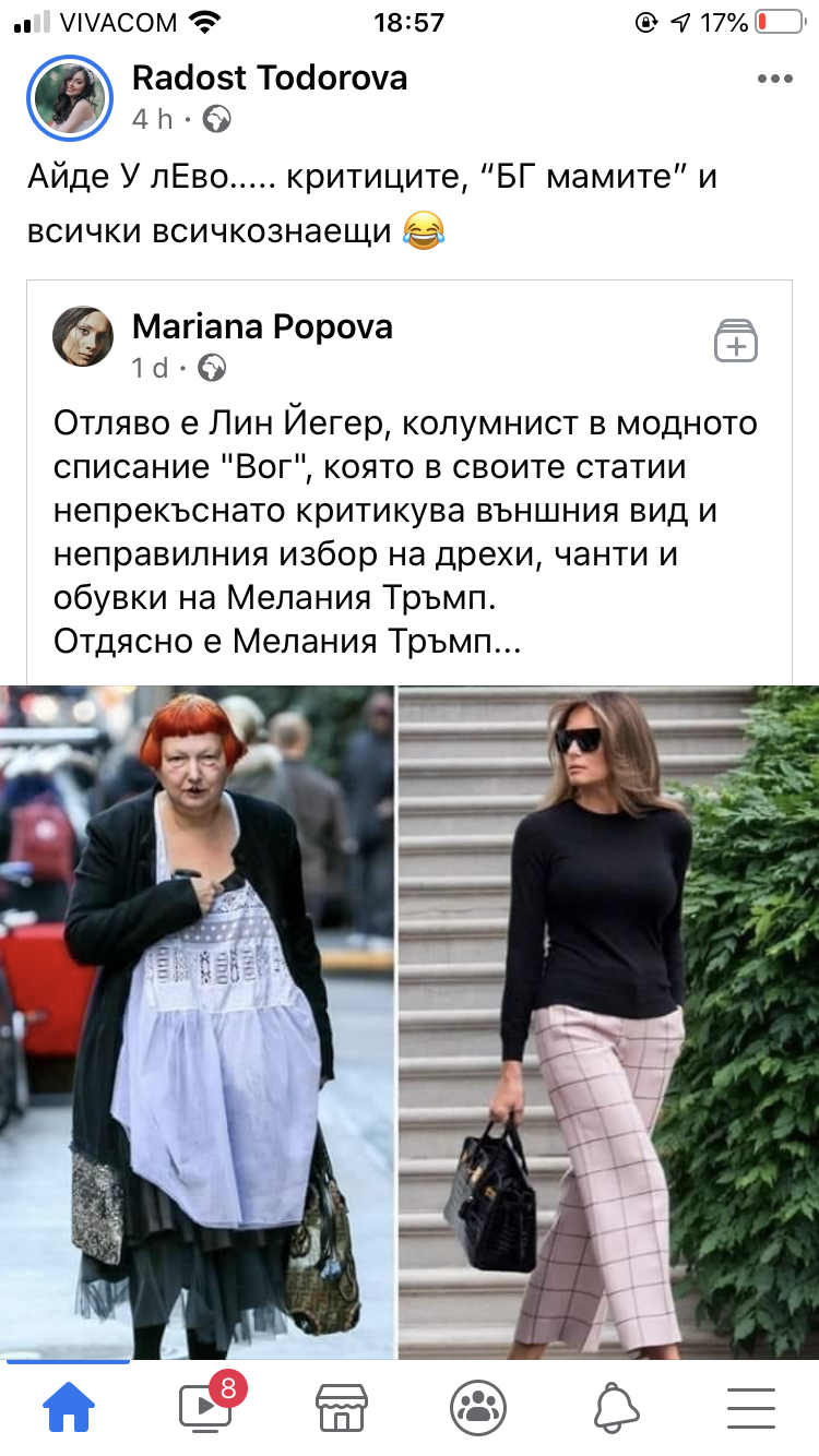 Сравнява Мелания, която е супер, мега стилната жена, с Гането ли?