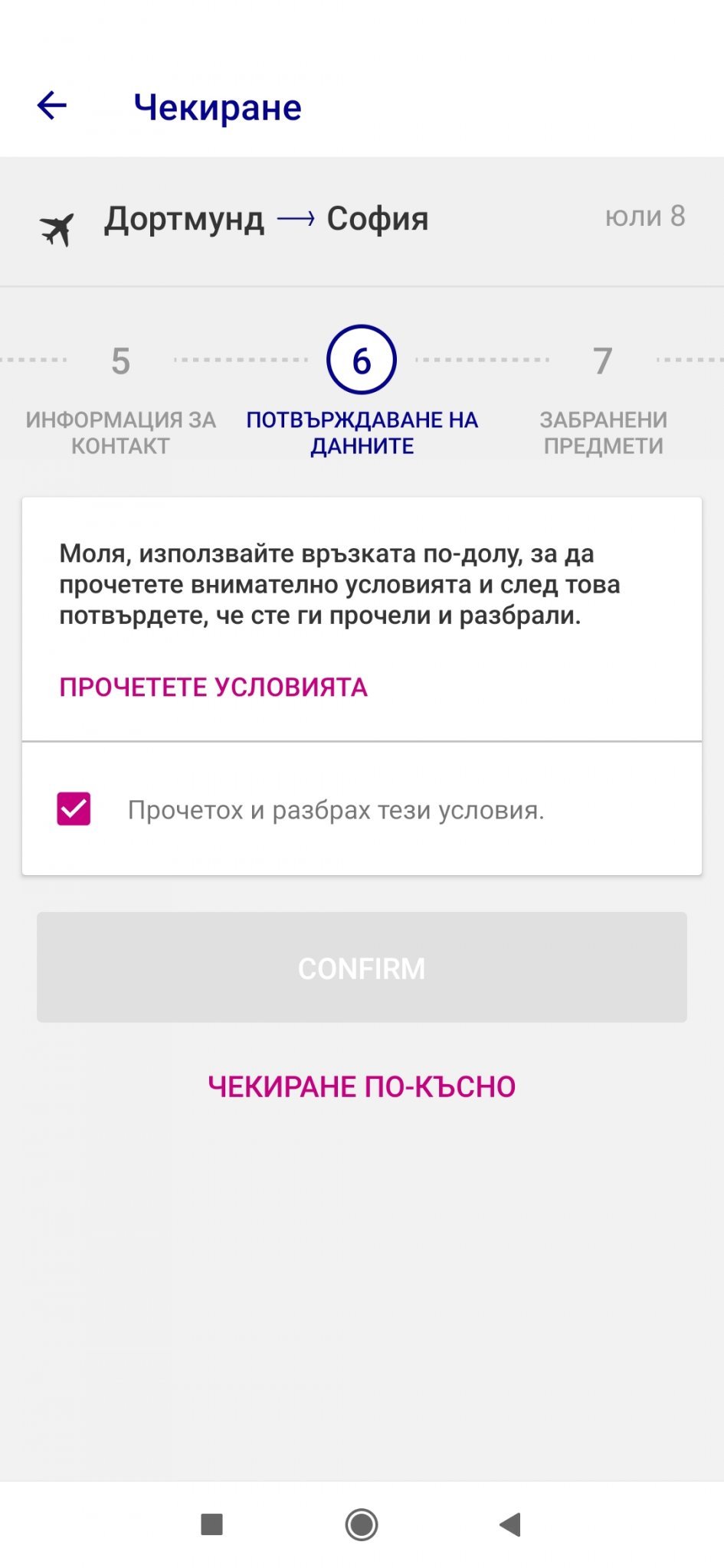 Как да се чекира полет, ако има проблем с потвърждаването на прочетените условия?