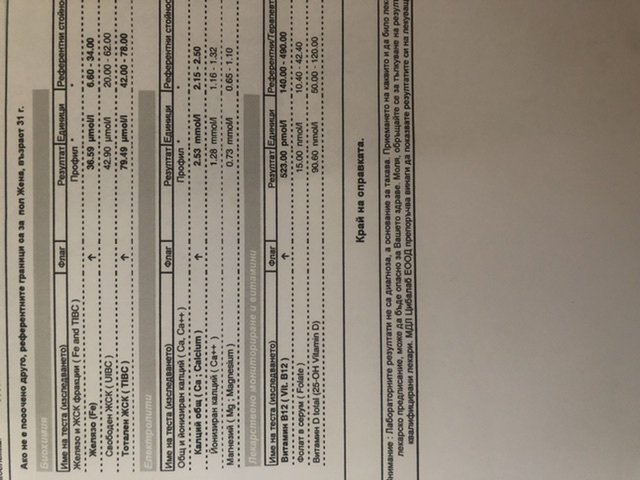 В момента гореспоменатите, при мен, са в средни към ниски стойности, за това си позволих да увелича храните, съдържащи желязо. Но при мен ефекта от качването на 10 единици за 3седмици по-скоро идва от дистанцирането на магнезия (който пречи на усвояването на желязото на клетъчно ниво и само трупа на черен дроб запаси, което е лошо).