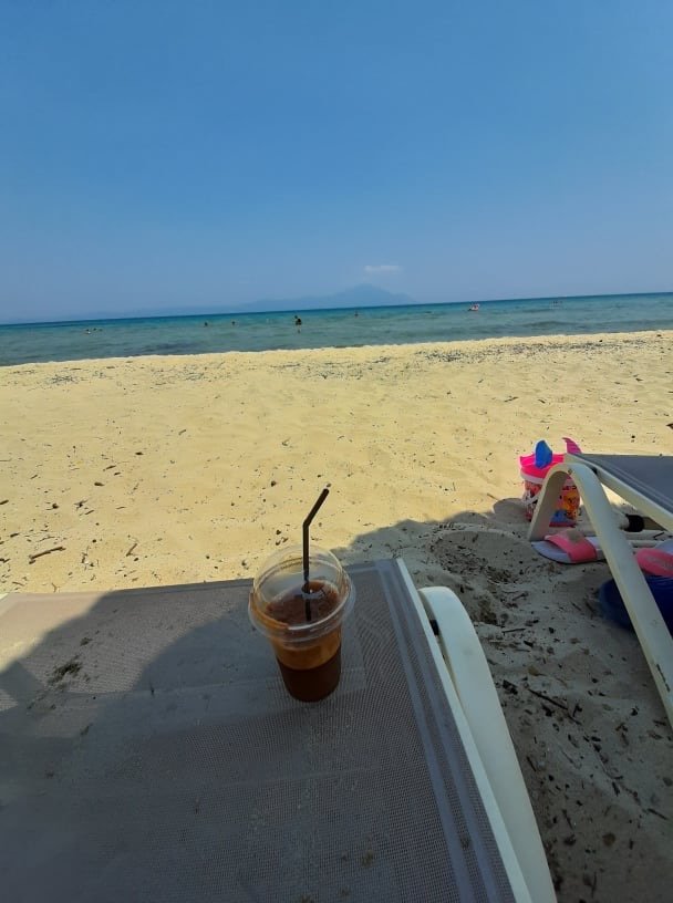 Не мога и 20 минути да изкарам на гръцки плаж, ако разстоянията са им като на снимките от Сарти. И както са на повечето им народни плажове.