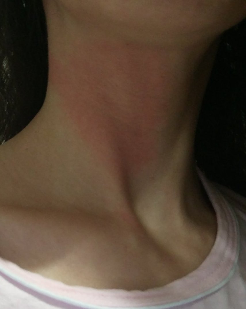 После обаче сложих меди целаген и като взе да ме пари всичко, като отидох до огледалото и... Това не е всичко, имам и по гърба, а съм пръснала малко само в корените