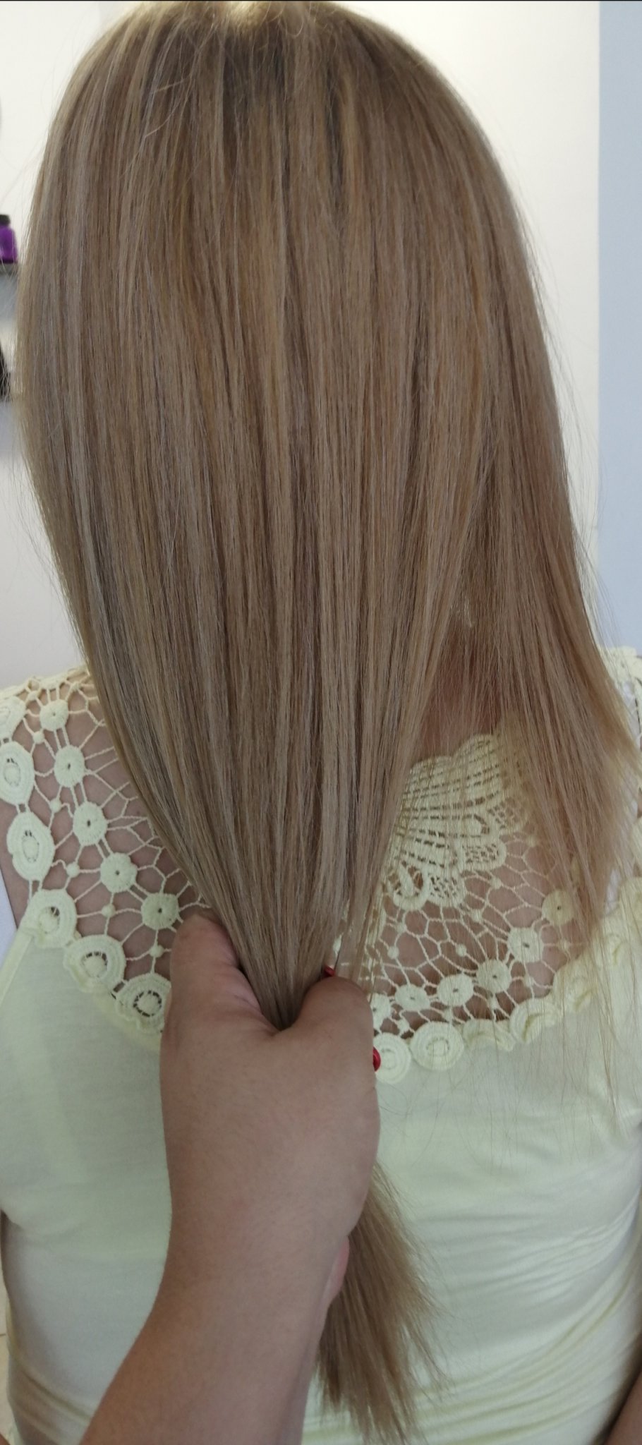 Моята е разреден в пръскалка детанглър с цитрус на ДМО. Усетя ли сухота на горния пласт пръскам и мачкам с него. Има разбира се и готови продукти,които момичетата са хвалили. Ванеса мисля ползва блондинската мъгла на Джойко има и други.