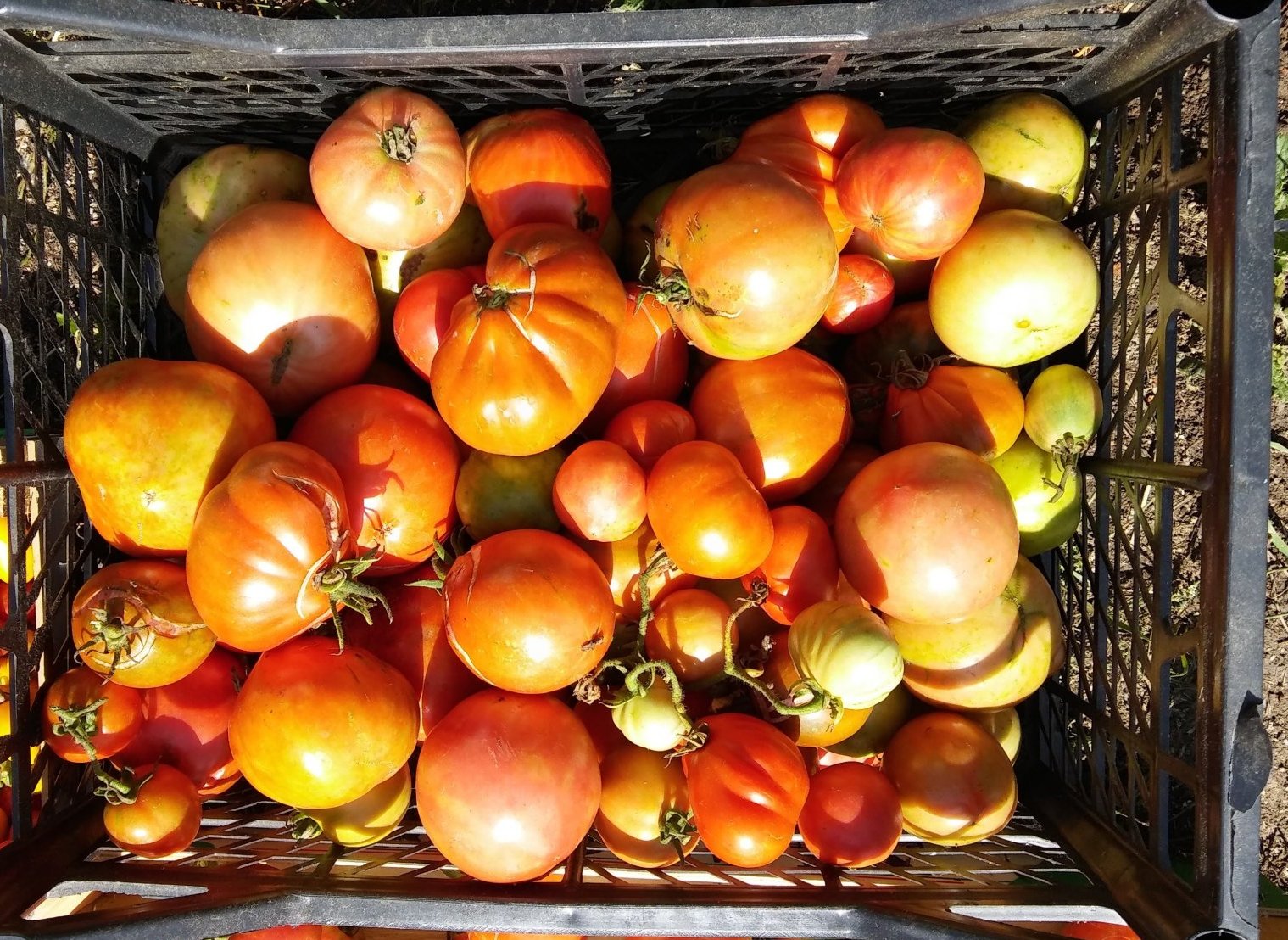 Това са доматите и чушките, които набрах тази неделя, част от тях трябва да доузреят, но няма напълно зелени :