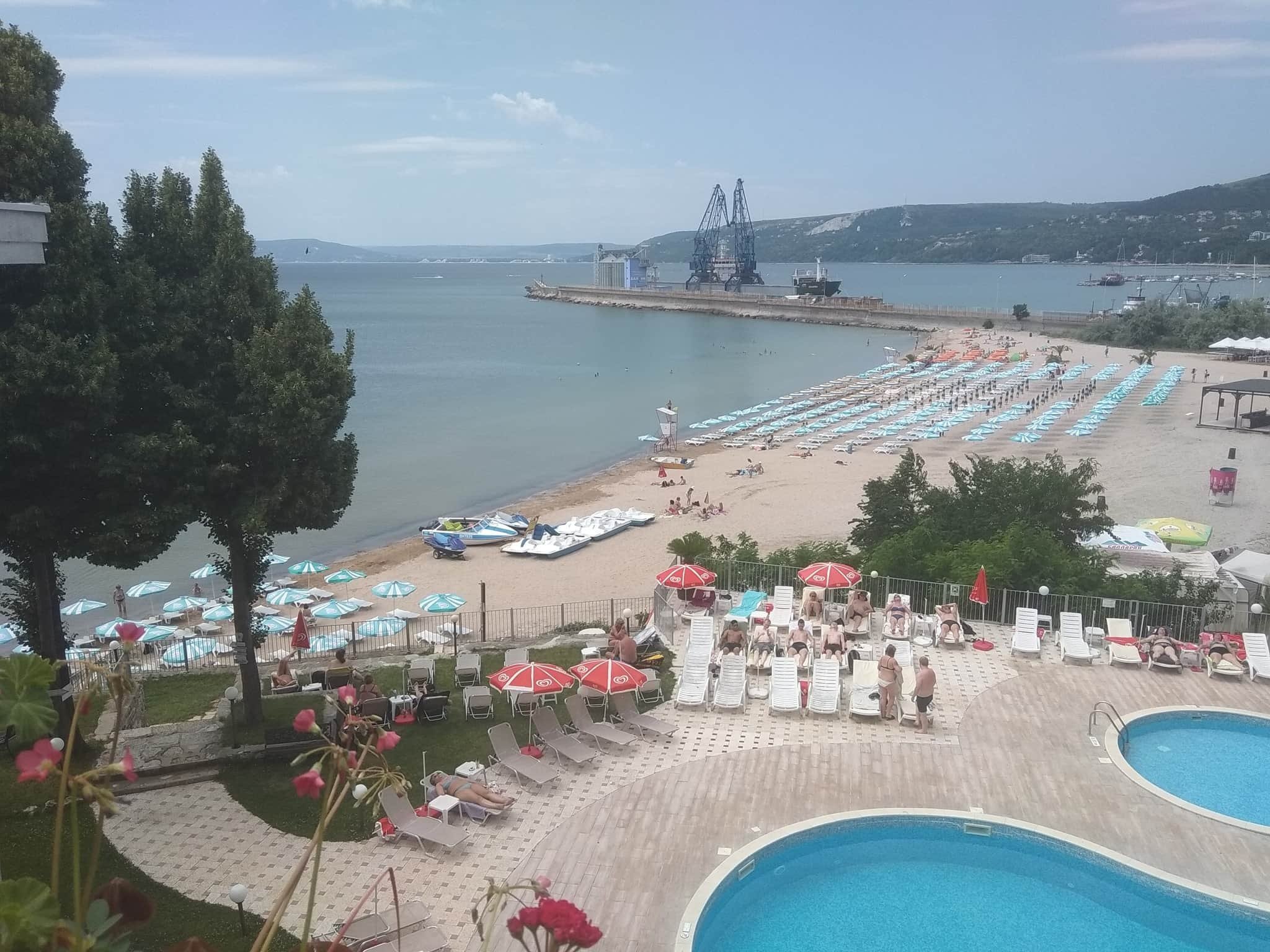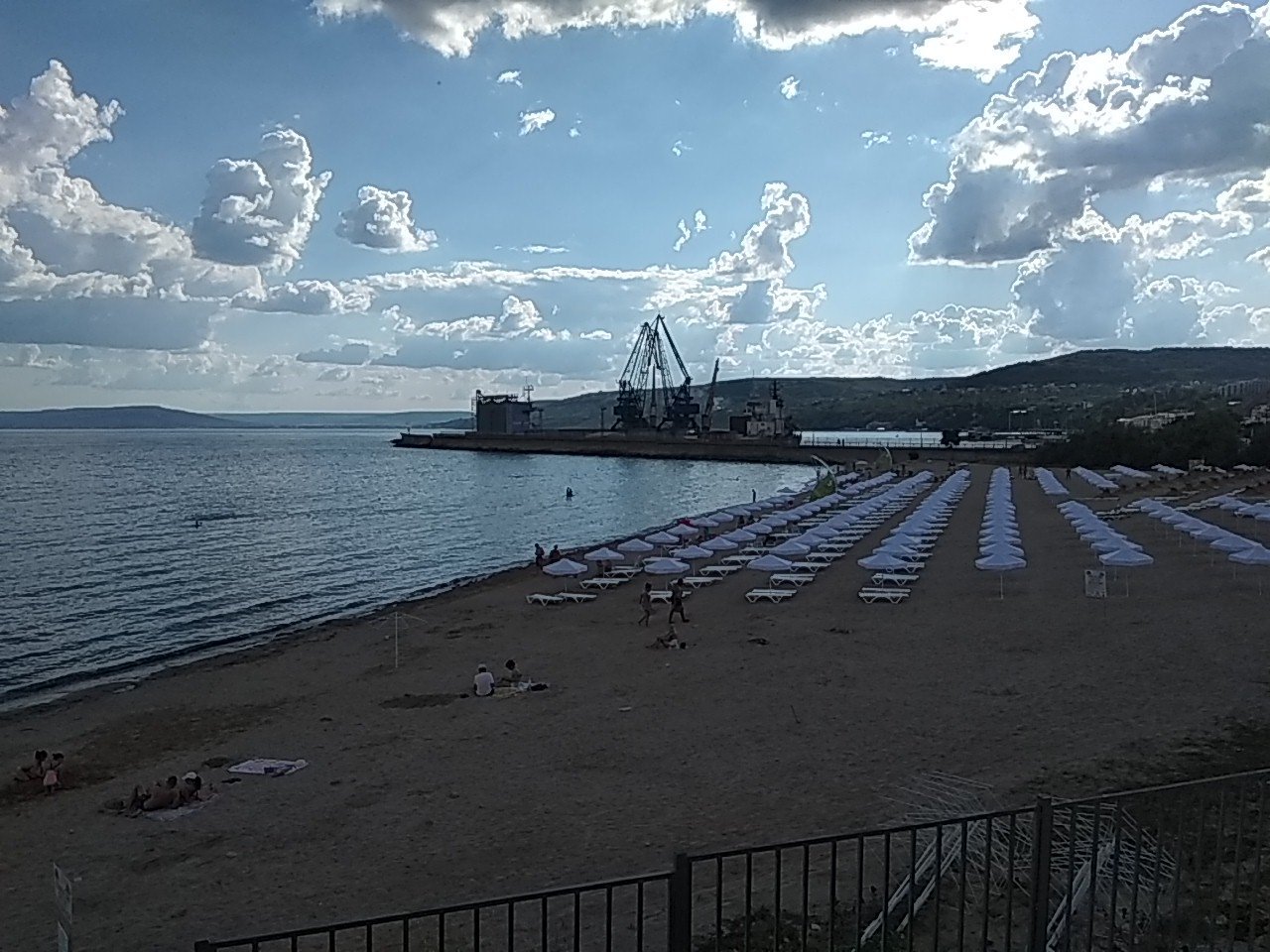 плажът пред хотела. Наблизо има кранове, които се виждат, но нас това не ни притесняваше. Само в ляво от хотела имаше камъни