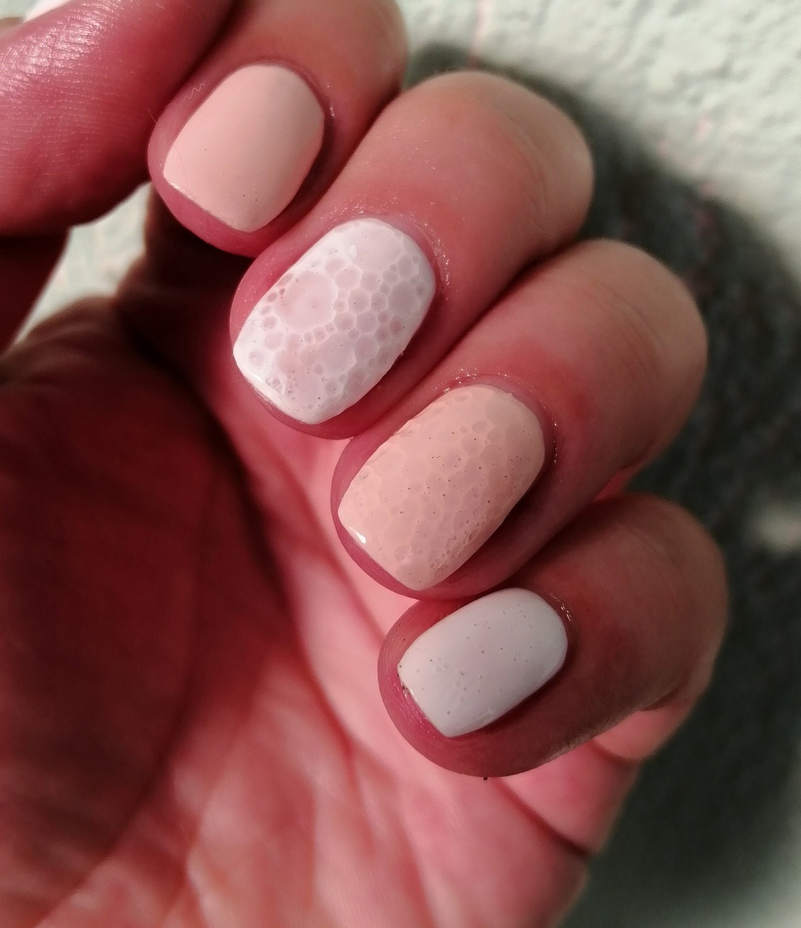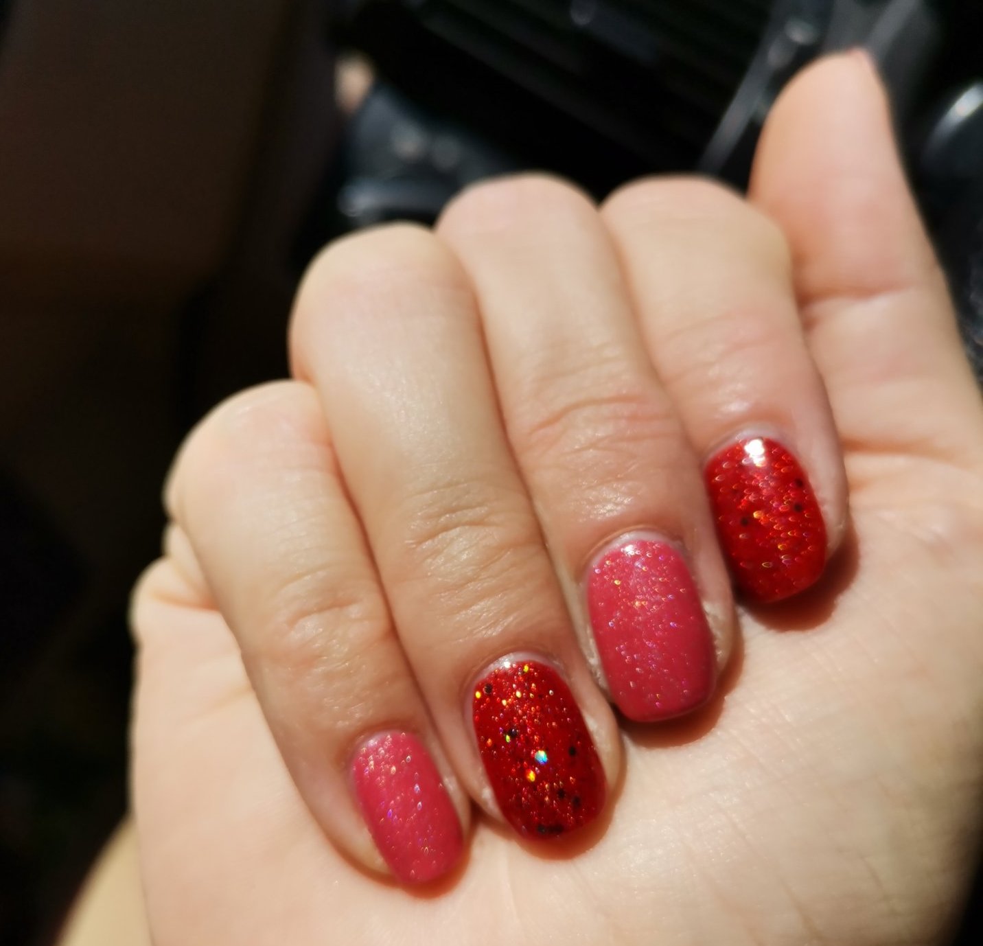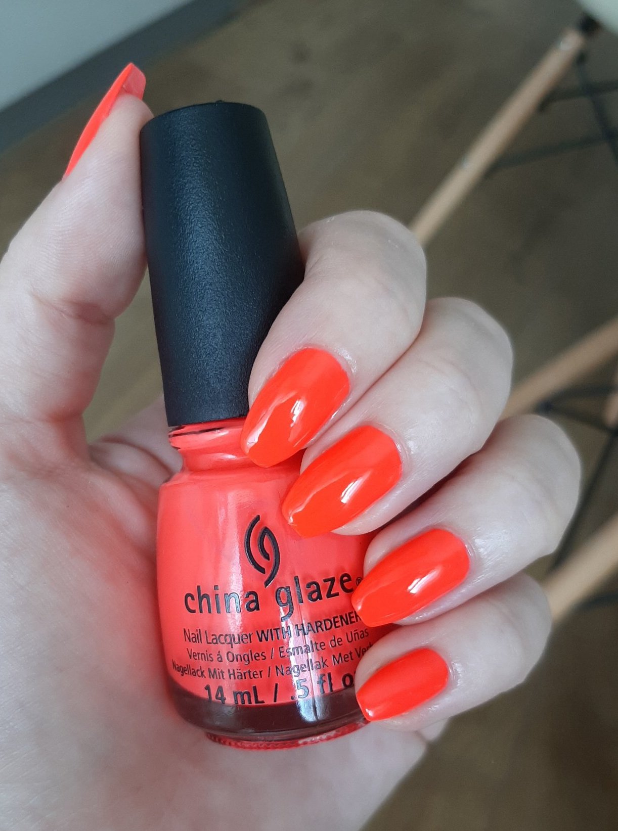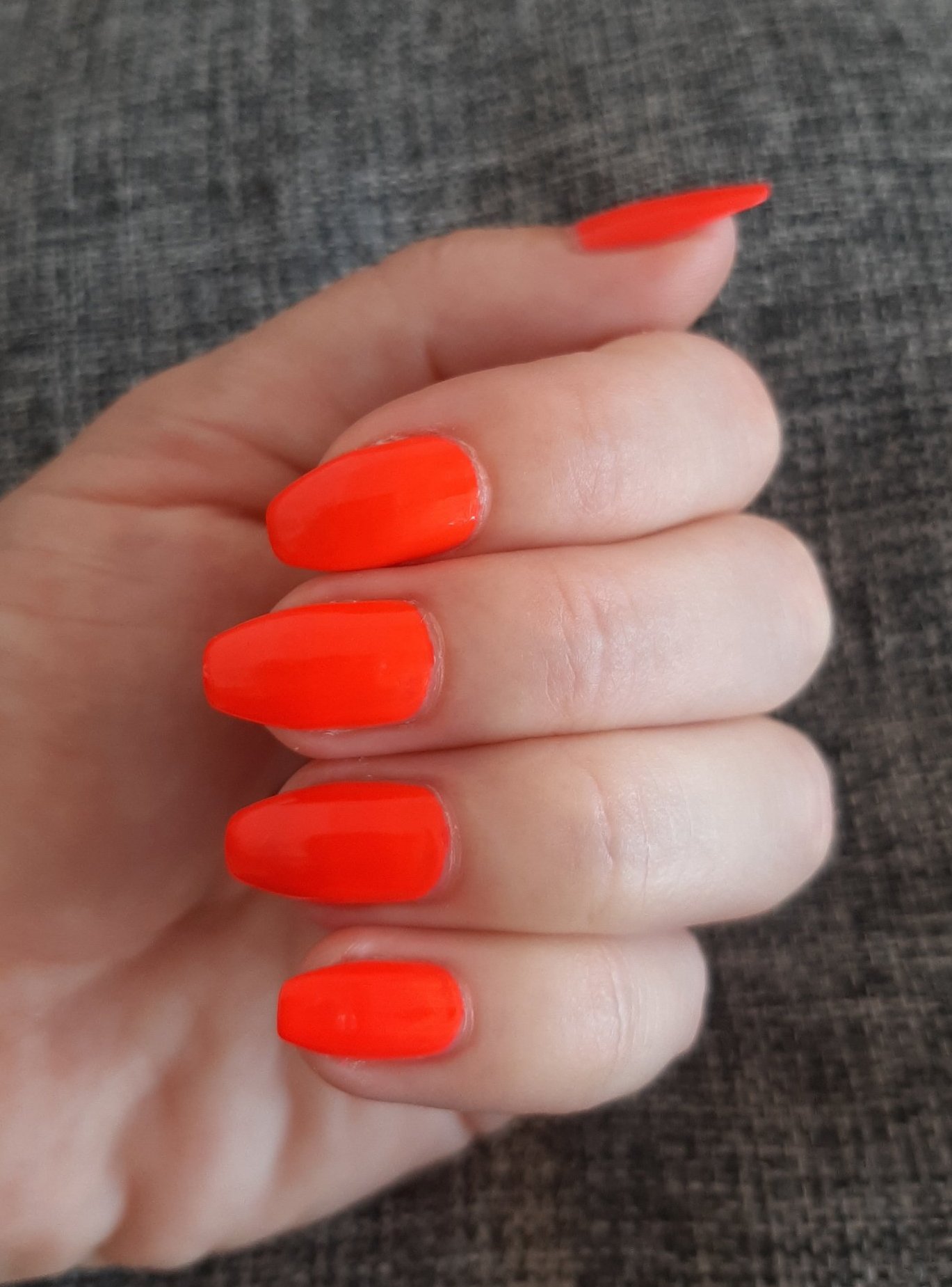 В шишенцето ми розовееше доста, на нокти е червено-оранжево-розов, естествено не излиза на снимките. А толкова се колебаех дали да го взема.