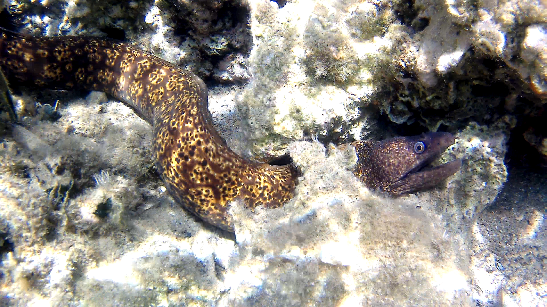 Колкото до змиорките – не са страшни и агресивни, според мен. Теоретично могат да те захапят, но аз съм се доближавала на броени сантиметри до около 20 такива създания и никога не са проявявали дори зачатък на нападателност. Веднъж погалих една по гръбчето (нещо, което не одобрявам от сегашна гледна точка, защото не е особено етично да безпокоим морските обитатели, пипайки ги) и тя изчезна за части от секундата. Grinning Буквално се изпари от погледа ми, изобщо не видях накъде забягна.