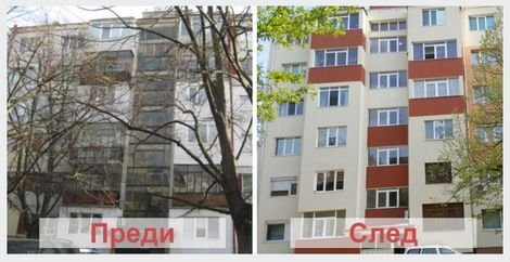 И ето санирани панелки - преди и след, говорим само за фасадите