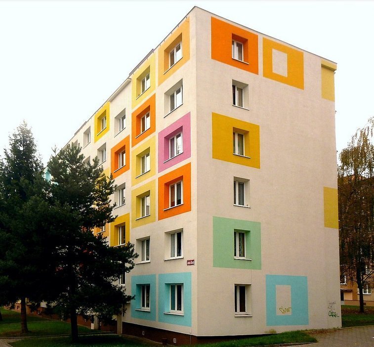 Каква е разликата с панелките като екстериор, освен че фасадата е нова, а не олющена? Ако панелките са грозни, значи и това е грозно.