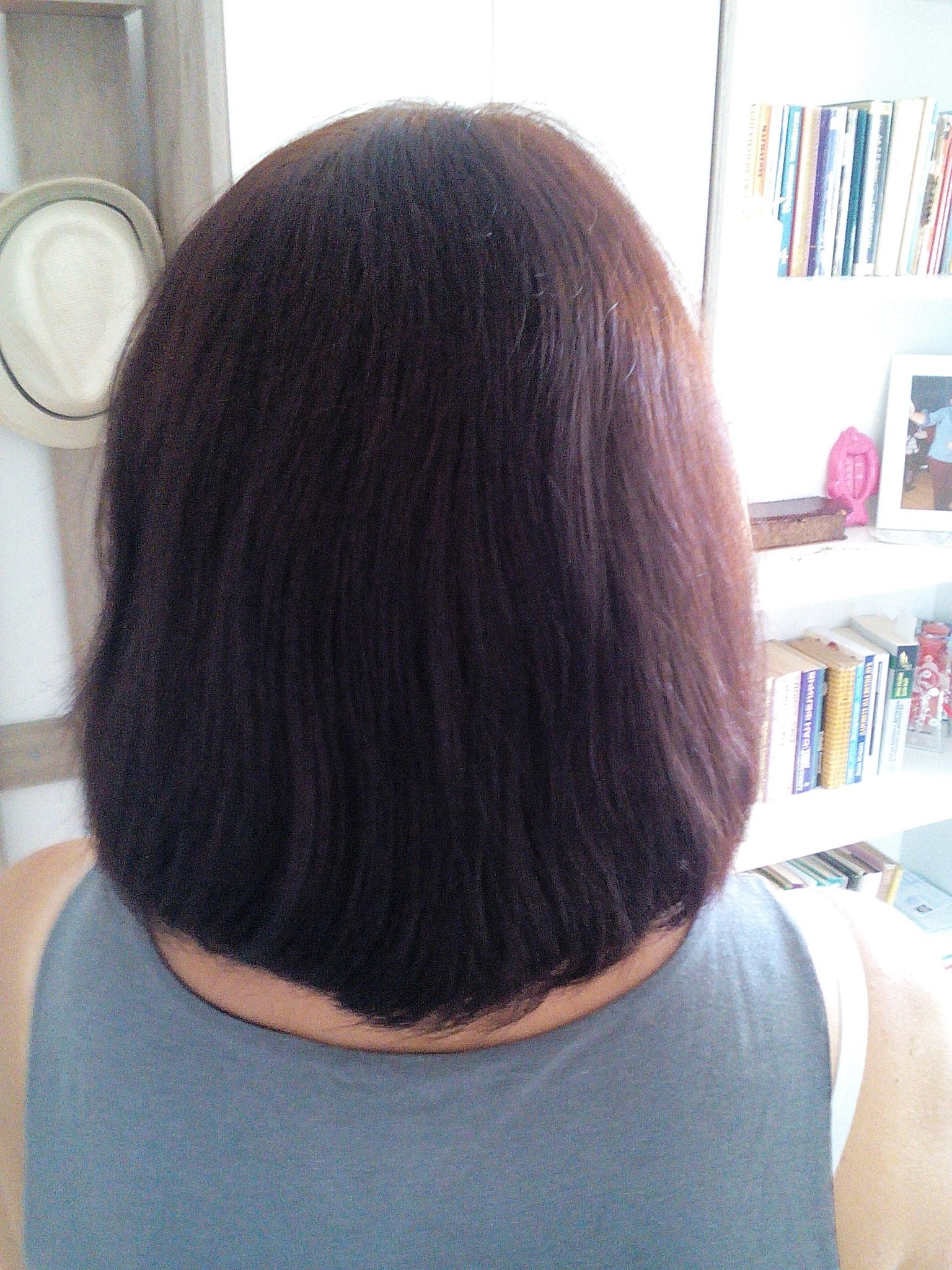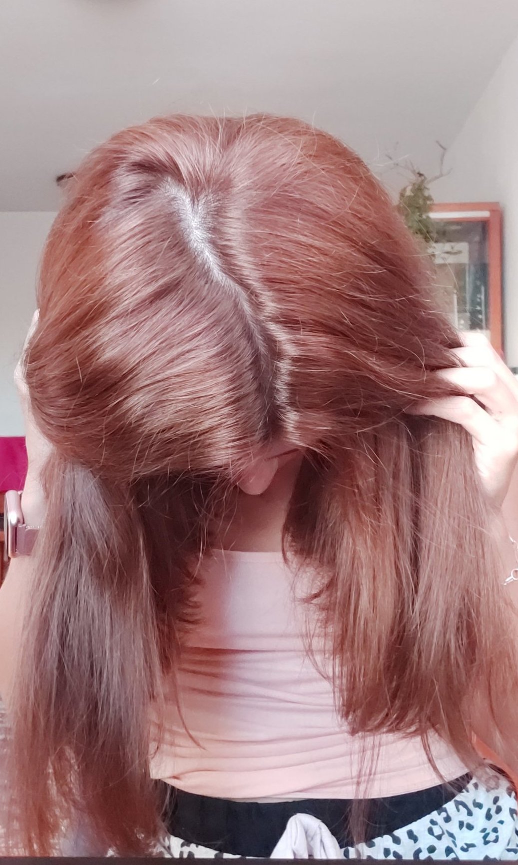 Ще покажа и моя освежен цвят. Вчера боядисах само корени, а дължините ги облях последните минути с малко боя, разредена с вода.