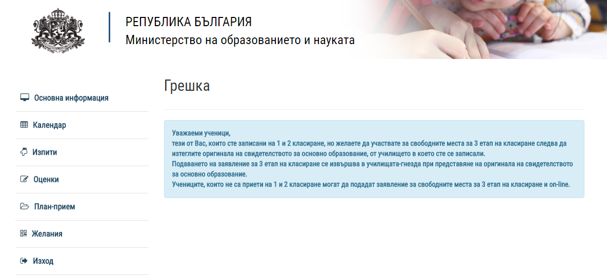 Досега учениците, които са се записали и после изтеглили документите си, не можеха да подават през системата заявление за трето класиране.
