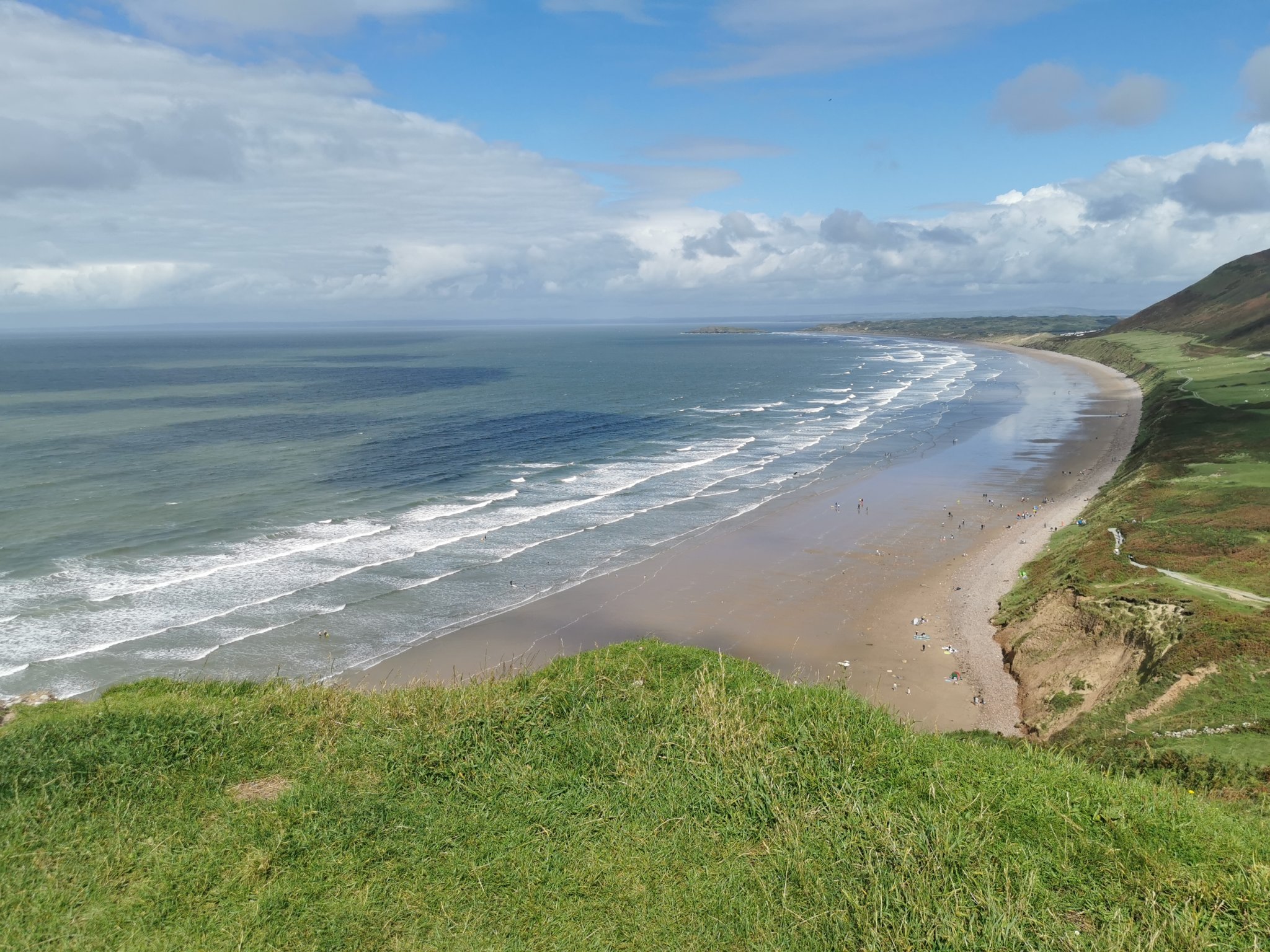 Да ви споделя едно прекрасно място, за втори път ходя там. Rhossili Bay, в района Gower, Уелс е. За излежаване на плажа и къпане в морето май не става, защото е духливо. Но има две опции за разходки, една лесна, по протежение на плажа и хълма до него и една трудна, стига се до върха на възвишение в морето. Но втората е достъпна само при отлив и има подскачане и катерене по скали. Пълно е с хора с неопрени и бордове в морето, тъй като имаше вълни. Активен холидей един вид, не за излежаване.