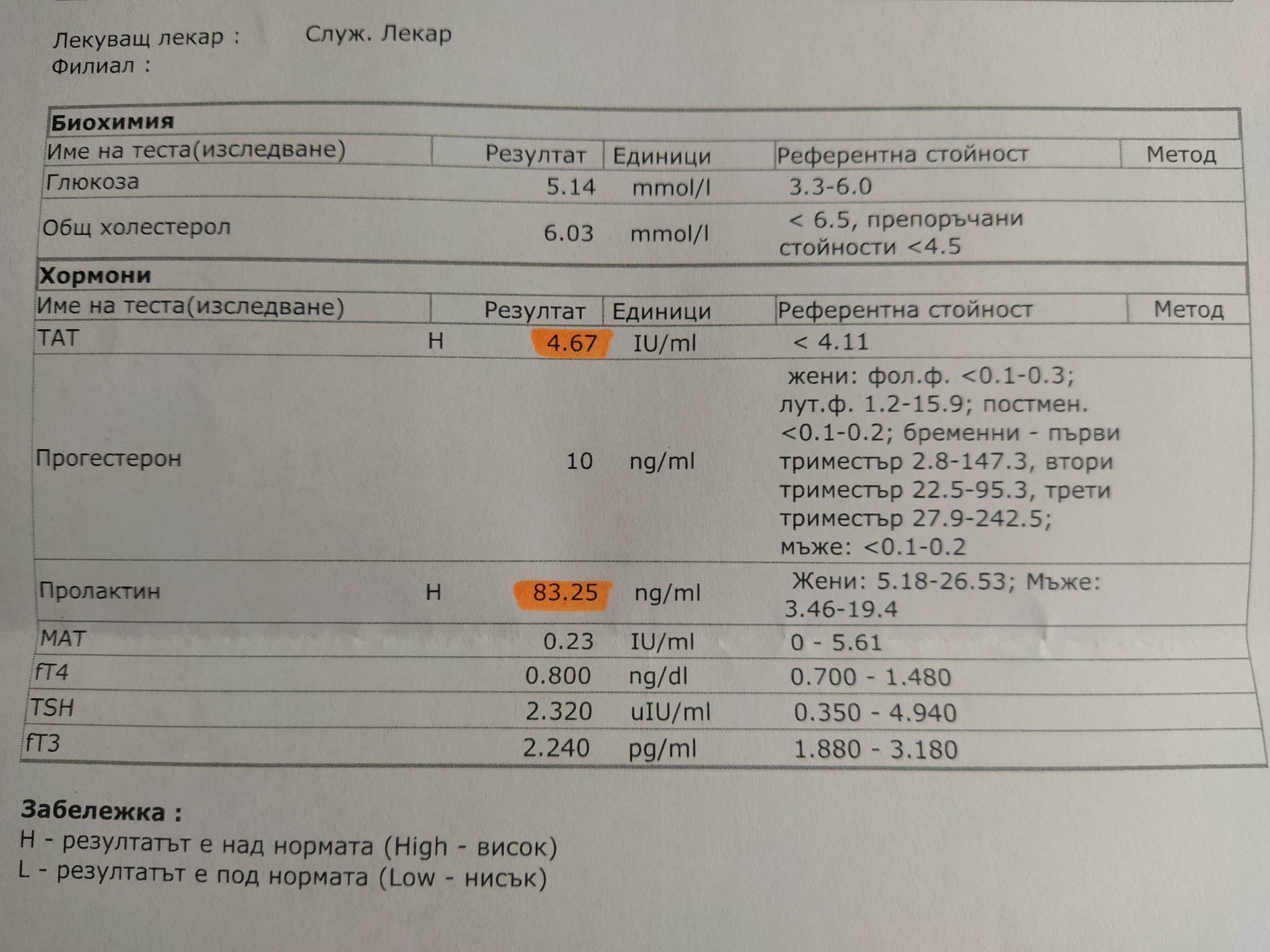 Пролактинът ми е по-висок - 546 при реф стойности 127.20 - 633.80
