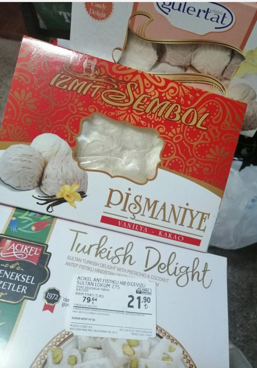 Приятелка искаше бял локум с шам фъстък, но нали не успяхме да отидем до Марги и видях този в Мигрос. Купих и от него. Имаше с нар и шоколадов също. Утре ще кажа като получи дали е добър.