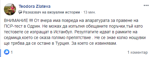 От вчера апаратурата в Одрин е повредена, и изпращат тестовете в Истанбул. Така се бавят около 3 дни