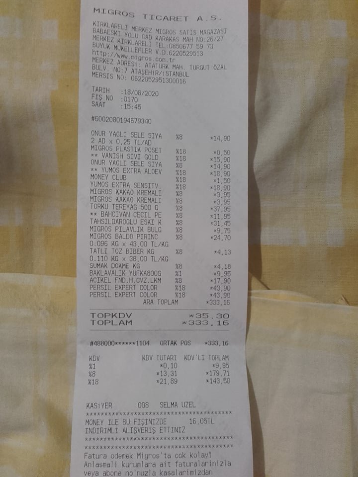 От вчера касова от Мигрос