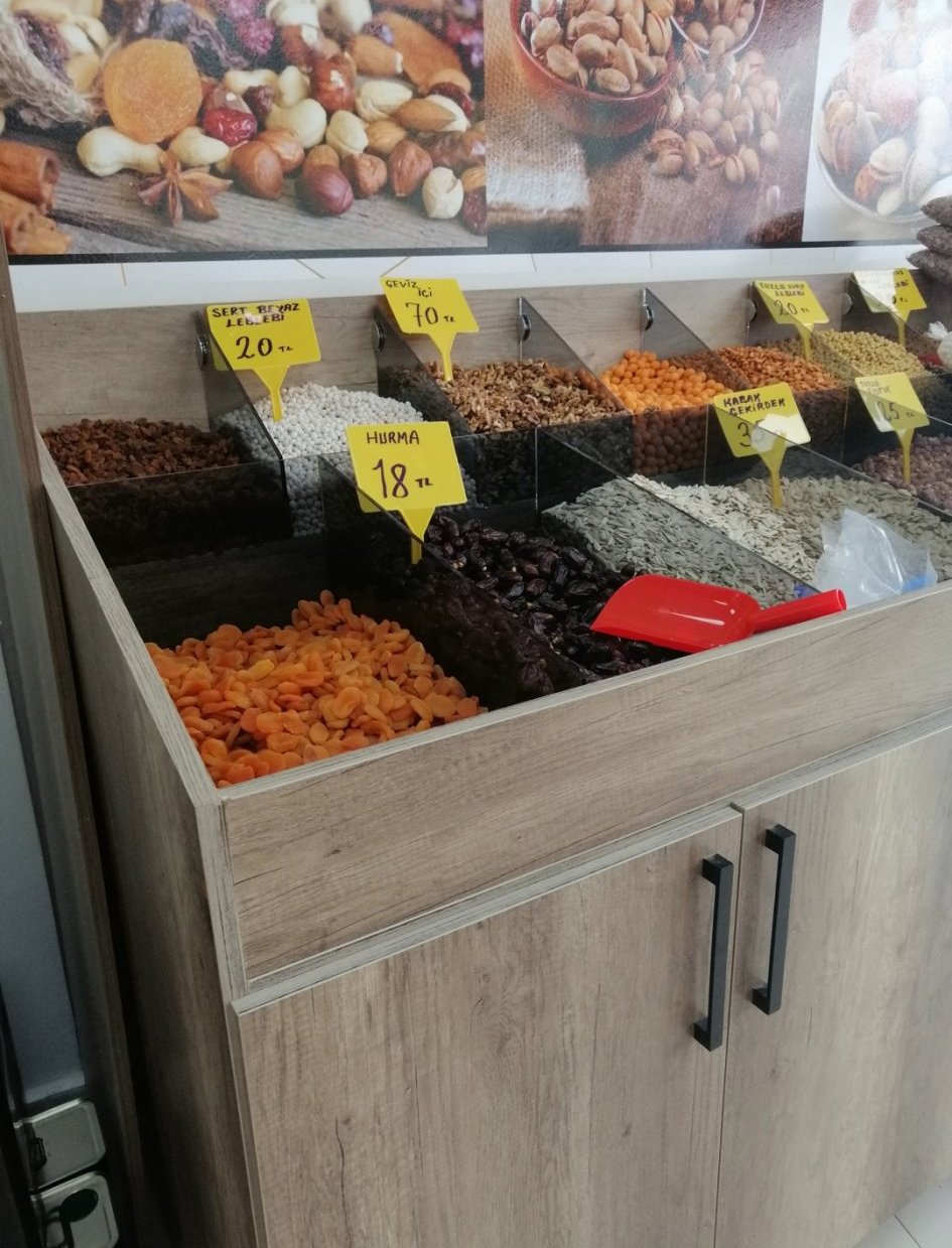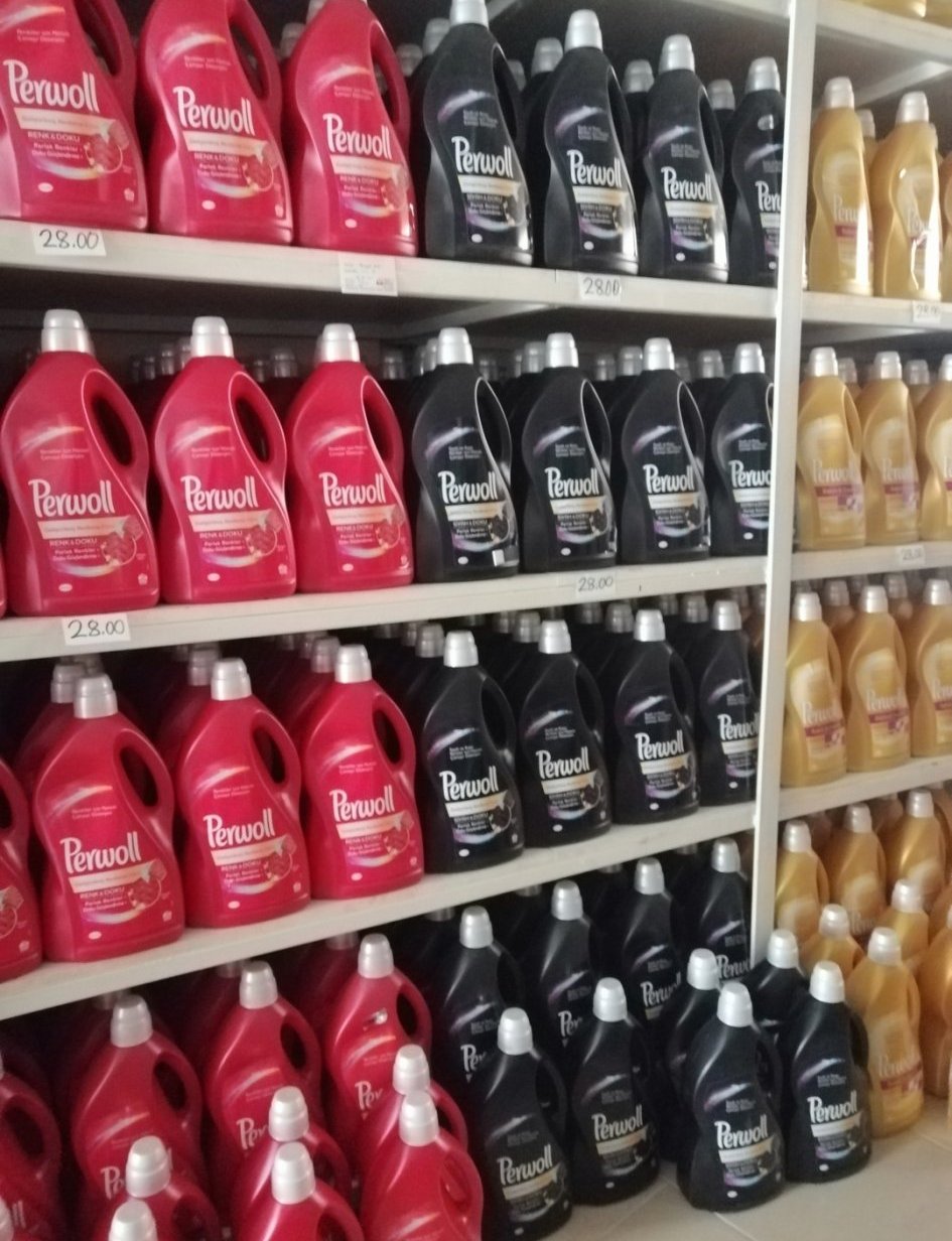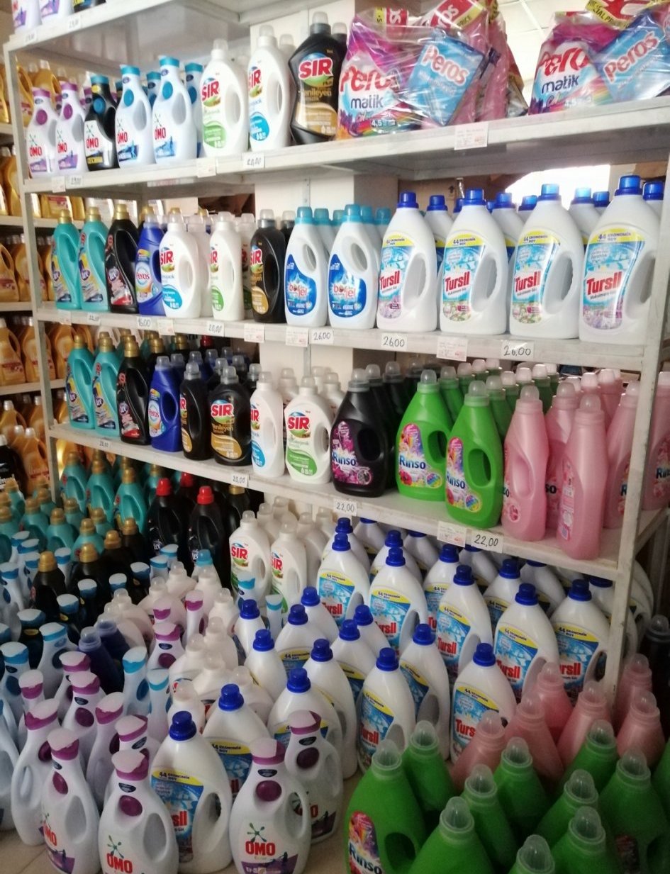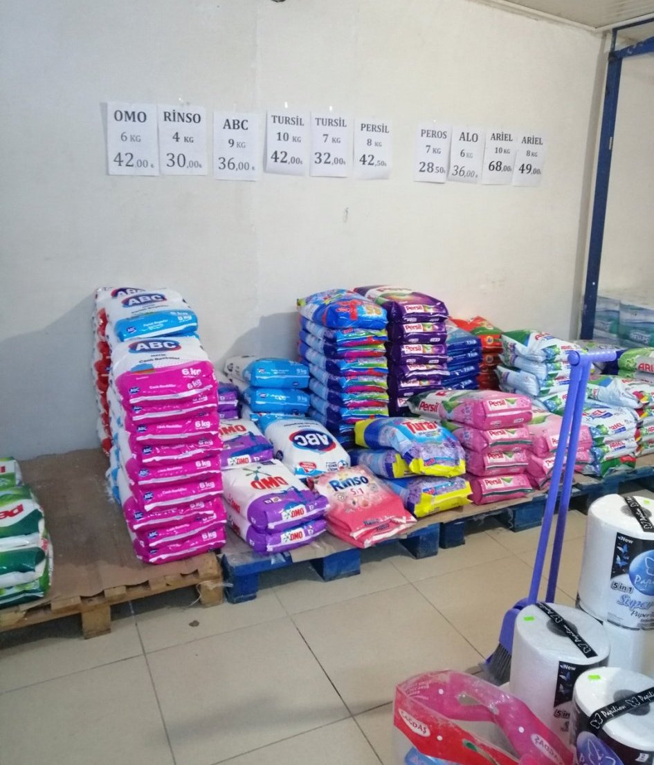 Тези са от големия склад, който е посредата някъде на борсите, пада се отляво ако се идва от пазара /срещу него е дядото с баклавата/ - като влезете са сладките и пакетирани, навътре са перилните. Според мен той е един от най-скъпите. Но много хора пазаруват от там.