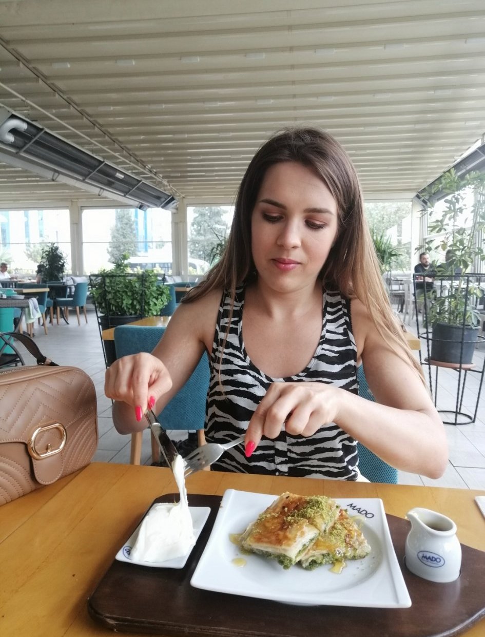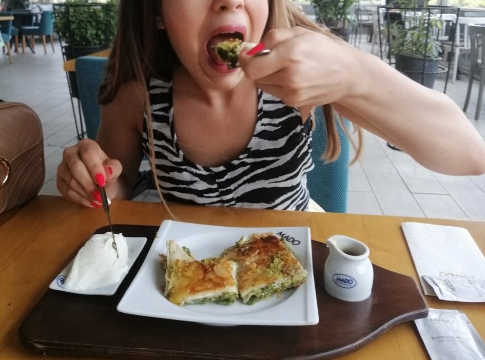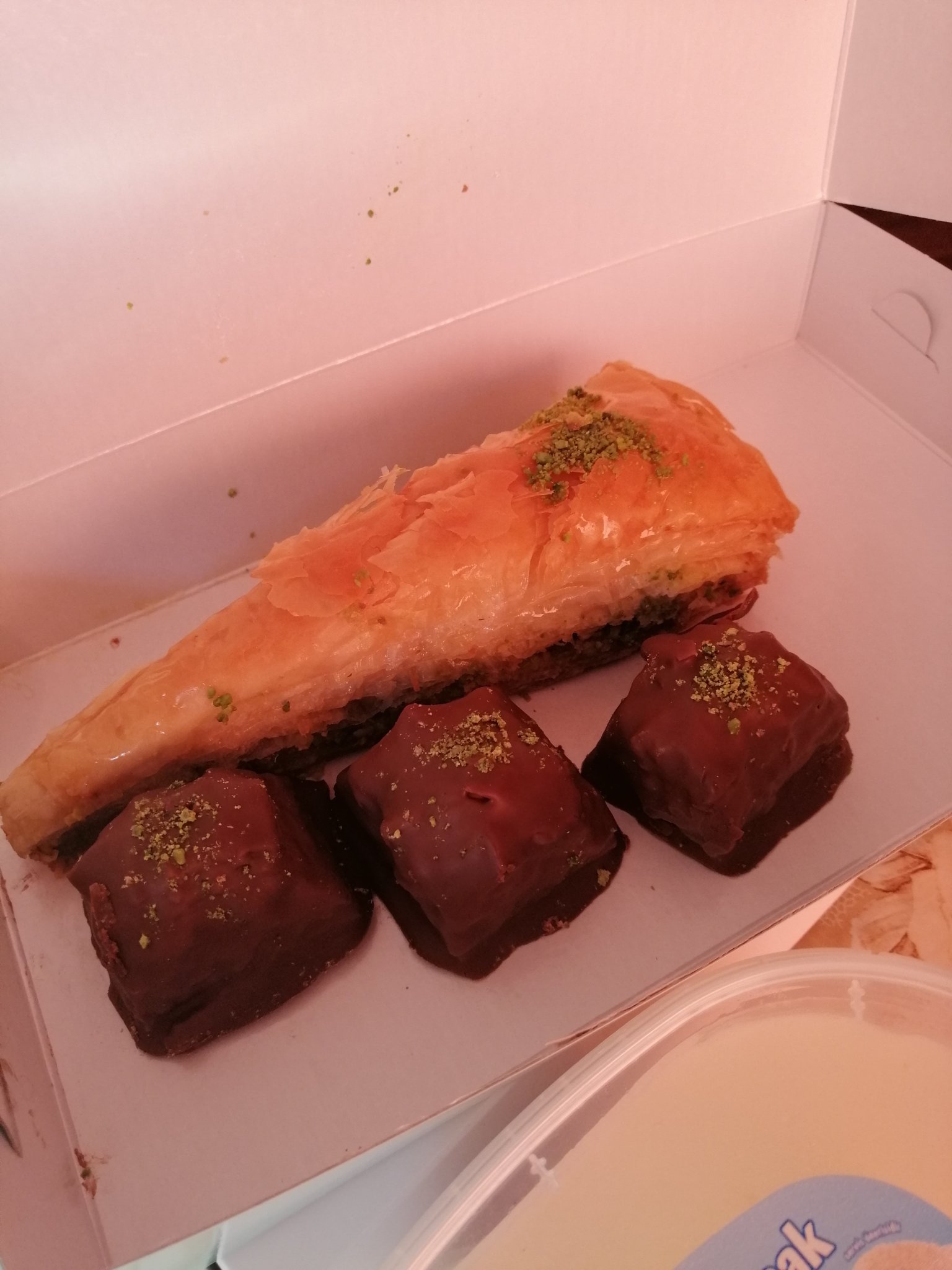 И тук имат мидие баклава. Порция от 2 парченца е 20 тл, но не ми позволиха да поръчам. И ето на, забравиха да ми сложат пък другите... Пфуу!
