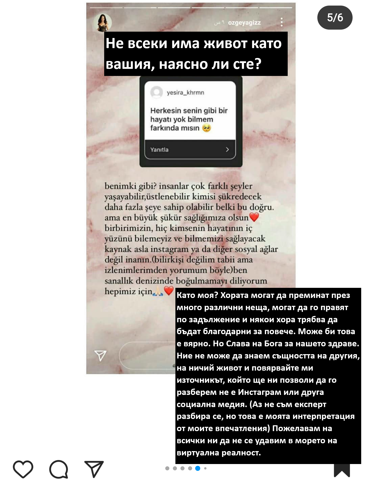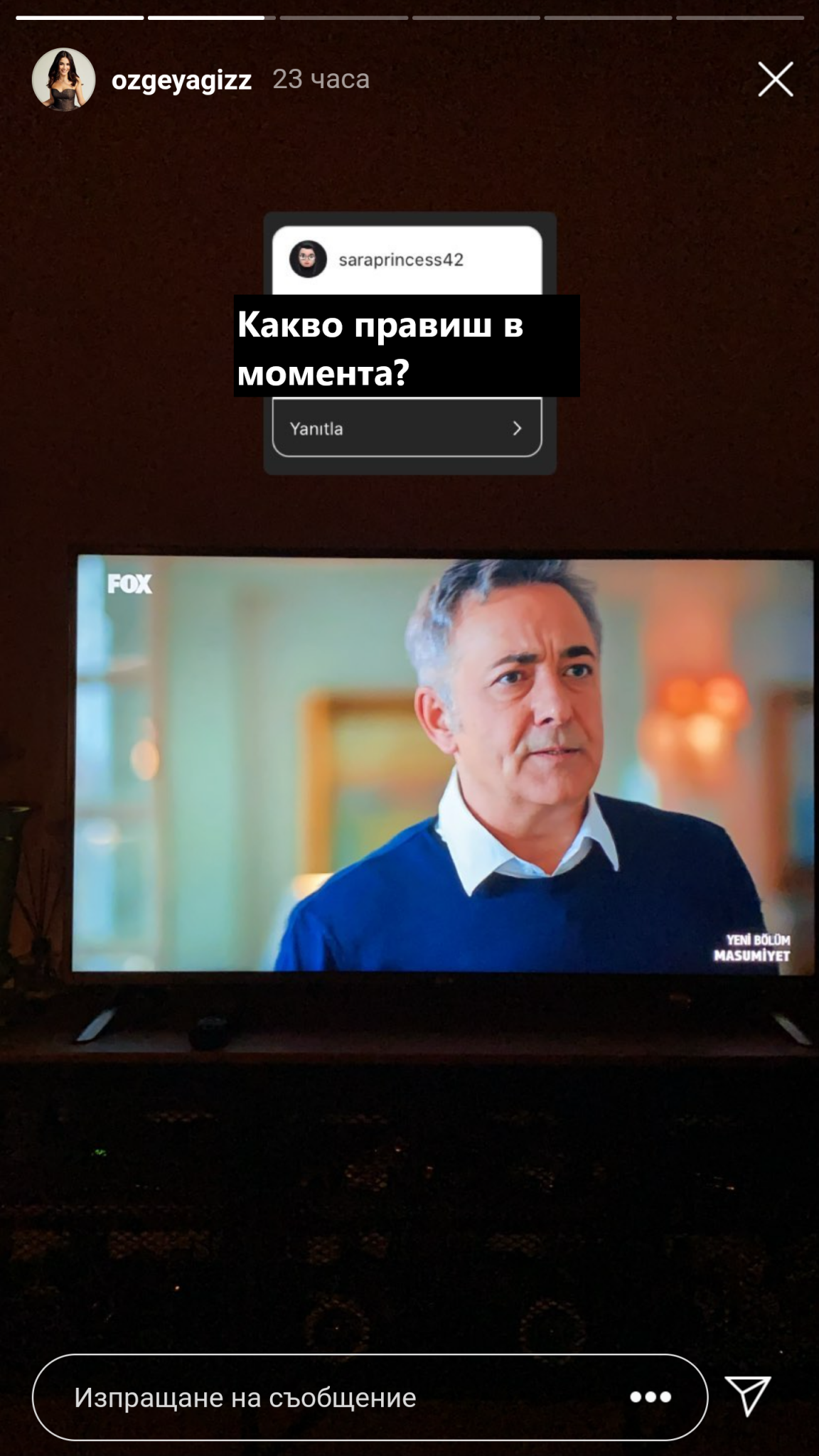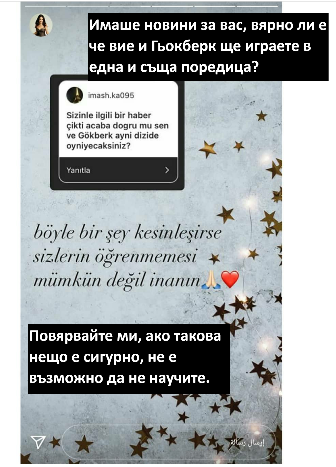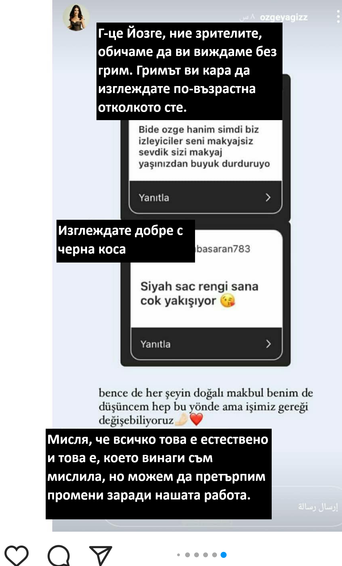 Що се отнася до въпросите в Инстаграм, на които Йозге е отговаряла онлайн, няма нищо съществено, клишета и отбиване на директен отговор. За мен важното беше, че по отношение на общия им летен проект с Демирджи е заявила, че ако го има, феновете първи ще научат. Питат я и за 4 сезон, но отговорът е уклончив. Всички отговори са горе-долу в такъв тон, ще научим някой ден, но не сега.