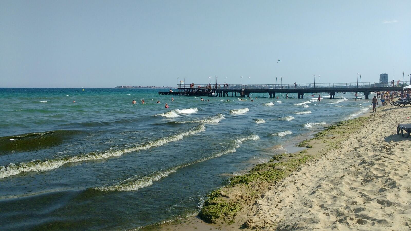 От следващият ден с кола ходихме до "Олимпийски надежди". Много по-добре поддържано, голяма ивица, но пак платената зона беше пълна на 110% (понякога по 4,5 шезлонга около чадър). Има няколко заведения за хапване, бих казал стандартни морски цени. Пак големи вълни, но по-малко водорасли. На единият залив има някакъв потънал кораб и той е образувал нещо като мини заливче. Много е плитко, няма водорасли и вълни. Беше се превърнало в детски кът Simple Smile