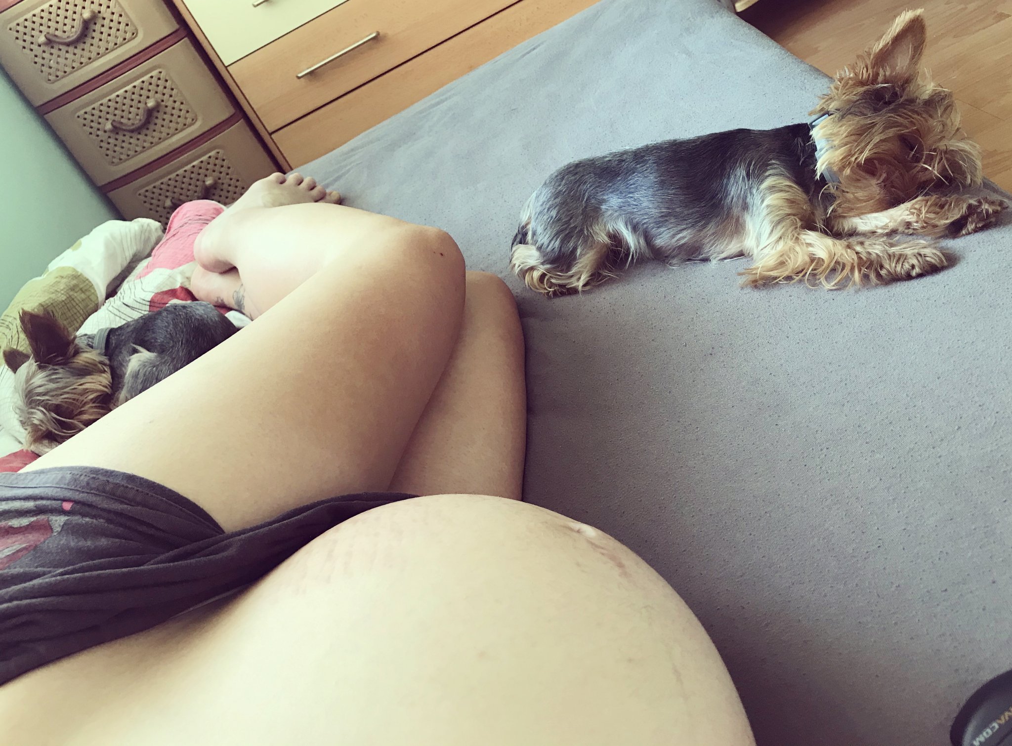 Зверски ми се спи, цяла вечер пак едни сънища...към 04:00 усетих, че ръцете ми са изтръпнали и подути и лицето ми се е подуло. На моменти ми се струва, че си усещам пръстите, но после пак се започва изтръпване с болка. Последните няколко дни почнах и да се дразня, че почти всеки, който видя ме пита "Още ли не си родила? ", "Ама няма ли да раждаш вече?"....все едно зависи от мен. Че и последния си го отнесе с малко по-груб тон, че това е бебе и си има термин, пък дали ще дочака зависи от него, не от мен или от някой друг.