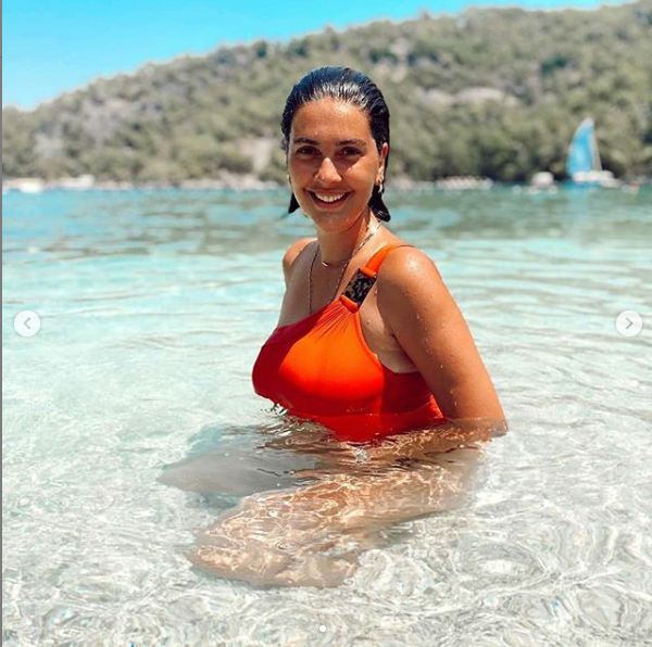 Актриса Бергузар Корель, несколько месяцев назад родившая второго сына, поделилась фото из отпуска, которые передают ее наслаждение морем"