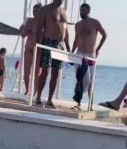 Обаче видяхте ли как се точат един след друг и спазват дистанция на плажа, а Енгин какво държи в ръка, дали не е маска