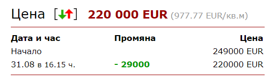 k.ivanov, ами честито - направили сте една от сделките на живота си! Ако бях на ваше място и ми предложат 2х от цената нямаше да се замислям много - парите трябва да се въртят и умножават Wink По принцип сте прав, но забравяте, че живеем в българската действителност, където всеки гледа да прецака другия и обикновенно клиента е губещия, а в крайна сметка той плаща всичко. Спада на цената е реален - в преден пост съм дал няколко скрийншота от реални обяви в имот.бг. Здравата логика показва, че спада в цените на недвижимостите ще продължи. Просто световната икономика е зле, а ние сме много зависими от нея. Ако хората имаха добри спестявания и не се притесняваха за работата си щяха да купуват. Но сега всичко ще си дойде на мястото, както стана след кризата от 2008г.