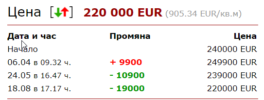 Момента е добър за преговори, но ако преговорите не вървят, то по-добре да се изчака. Смятам, че нещо струва толкова, колкото някой е готов да плати.. Мен лично не ме бива в преговорите и реших да не се разправям с неразумни продавачи, като за момента спирам с огледите. Като ми е скъпо и искам да не рискувам, не прибързвам - само ще гледам обявите, докато намеря подходящия за нас имот. Бих купил, но не на всяка цена - ще чакам колкото е необходимо, защото ценя времето и труда си. Покупката на имот е сериозна крачка и изисква сериозно отношение. Криза е, пазара се сви, цените за много жилища все още са твърде високи - няма предлагане, няма сигурност на доходите, хората не са се юрнали да купуват или продават - точно обратното. Но в продължителен перод от време надценените имоти и продавачите, които се нуждаят от пари сами ще намалят офертната цена с 10,20,30,.. хиляди евро. Отделно очаквам спад и отрезвяване на пазара, заради кризата, така както стана през 2008г. (а тази изглежда ще бъде далеч по-продължителна). Така като гледам в момента 10% отстъпка в цената е напълно постижима, а дори може да преговаряте за допълнителни отстъпки, като например да си поделите разходите по сделката (които не са никак малко) или да поискате някакви подобрения и попитате за допълнителни дребни отстъпки. Ето няколко произволни примера от имот.бг (избирате някаква сума (от-до / за примера съм избрал фиксирана сума 220к. за произволен вид на имота и произволен квартал), гледате имоти с намаляващи цени - червената стрелка, отваряте обявате и цъкате на стрелката за история). След още 3-6-12 м. вижте същите имоти и може да останете приятно изненадани от цените..